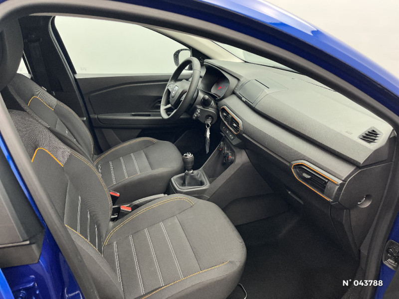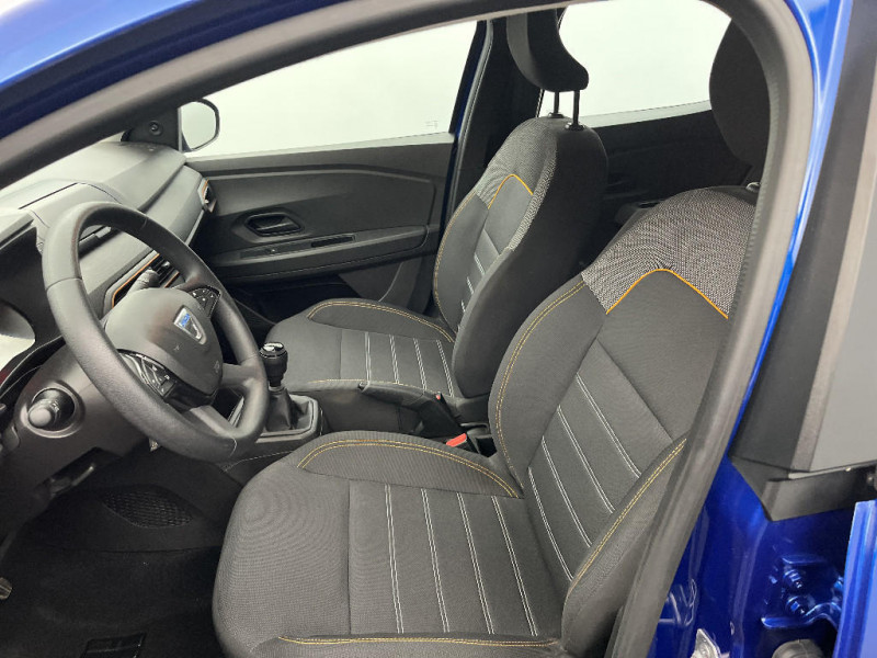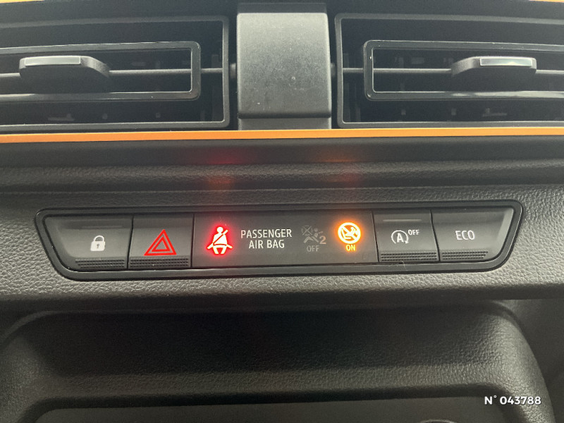 Clé 3 boutons / Volant mousse / Fonction éco-mode / Airbag latéral avant : thorax + rideau / Feux arrières avec signature lumineuse Y / Système de freinage d'urgence autonome à des vitesses interurbaines 30-140km/h / Signature lumineuse DACIA en Y à LED / Rappel de bouclage de ceintures / Système de freinage d'urgence autonome à des vitesses interurbaines 7-170km/h / Classe energetique C / Alternateur renforcé / Console basse + rangement ouvert / Cluster TFT / Enjoliveur 16'' Saria - Stepway / Harmonie intérieure / Sellerie Stepway avec surpiqures / Media control (Streaming audio bluetooth avec support téléphone, 2 haut-parleurs, 1 USB) / Kit de gonflage / Lève-vitres AR manuels / Peinture opaque / Alerte d'oubli de bouclage des ceintures de sécurité / Barres de toit longitudinales