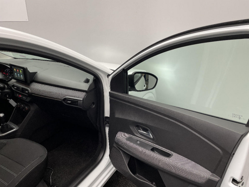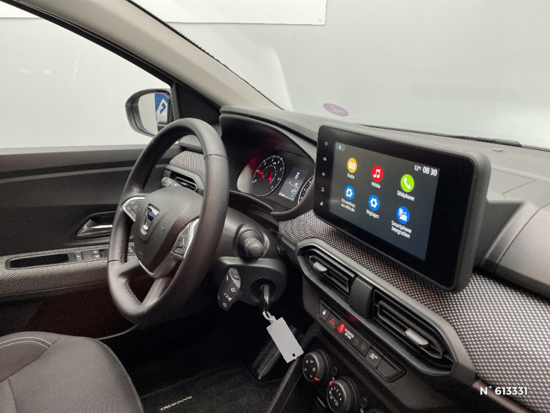 Kit de gonflage / Rétroviseurs extérieurs ton carrosserie / Signature lumineuse DACIA en Y à LED / Peinture opaque / Alternateur renforcé / Classes énergetiques B / Système de freinage d'urgence autonome à des vitesses interurbaines 7-170km/h / Clé 3 boutons / Console basse + rangement ouvert / Cluster TFT / Enjoliveur 15'' Sorane / Harmonie intérieure / Sellerie Confort avec surpiqures / Volant Soft Feel TEP / Airbag latéral AV : thorax + rideau / Feux AR avec signature lumineuse Y / Roues tôle 15" / Media display (écran 8'', réplication smartphone, 4 haut-parleurs, 1 port USB) / Rappel de bouclage de ceintures