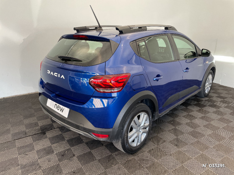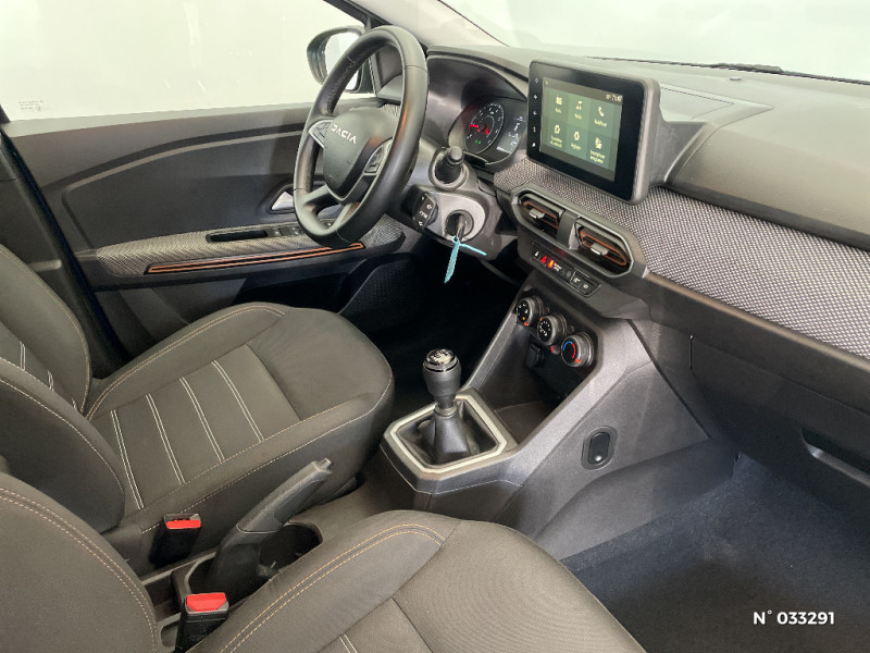 Plancher de coffre plat / Media display (écran 8'', réplication smartphone, 4 haut-parleurs, 1 port USB) / Système de freinage d'urgence autonome à des vitesses interurbaines 7-170km/h / Alternateur renforcé / Fonction éco-mode / Kit de gonflage / Peinture opaque / Nouvelle identité visuelle / Enjoliveur 16'' Saria - Stepway / Clé 3 boutons / Console basse + rangement ouvert / Cluster TFT / Sellerie Stepway avec surpiqures / Volant Soft Feel TEP / Airbag latéral avant : thorax + rideau / Feux arrières avec signature lumineuse Y / Signature lumineuse DACIA en Y à LED / Rappel de bouclage de ceintures