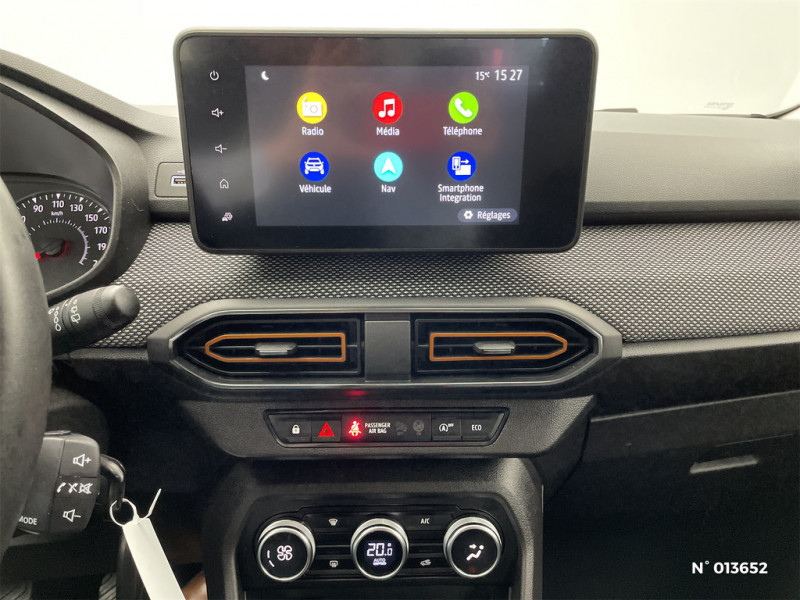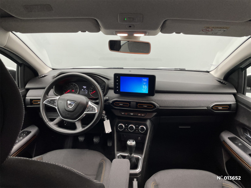 Clé 3 boutons / Peinture opaque / Console basse + rangement ouvert / Cluster TFT / Enjoliveur 16'' Saria - Stepway / Harmonie intérieur / Phares de jour LED avec signature lumineuse Y / Projecteurs Full LED avec signature lumineuse Y / Sellerie Stepway avec surpiqures / Volant Soft Feel TEP / Airbag latéral avant : thorax + rideau / Feux arrières avec signature lumineuse Y / Système de freinage d'urgence autonome à des vitesses interurbaines 30-140km/h / Media display (écran 8'', réplication smartphone, 4 haut-parleurs, 1 port USB, 1 support téléphone) / Signature lumineuse DACIA en Y à LED / Rappel de bouclage de ceintures / Fonction éco-mode / Kit de gonflage / Rétroviseurs extérieurs ton carrosserie / Alerte d'oubli de bouclage des ceintures de sécurité