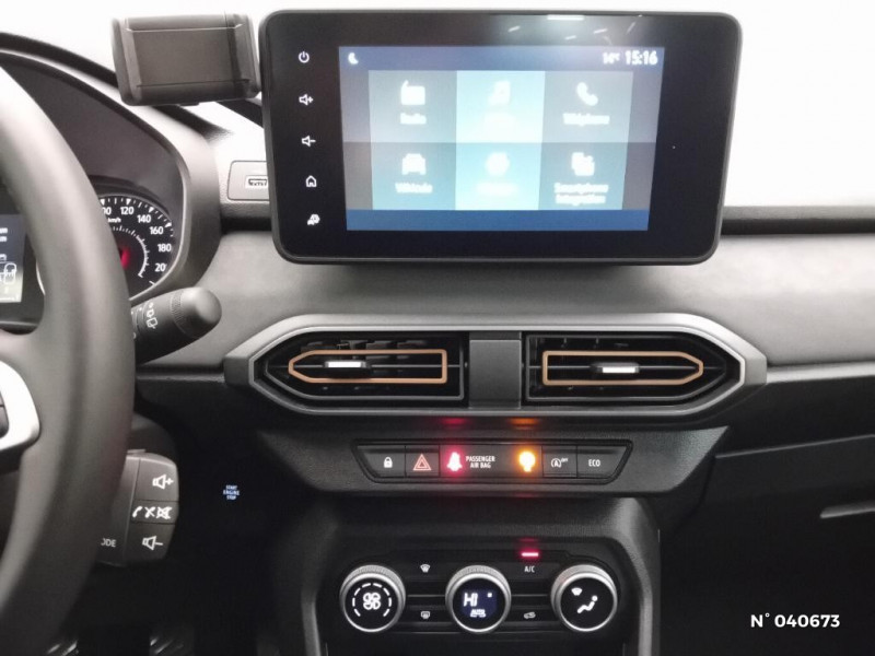 Fonction éco-mode / Eclairage du coffre / Kit de gonflage / ESP+ASR / Console basse + rangement ouvert / Volant Soft Feel TEP / Airbag latéral avant : thorax + rideau / Feux arrières avec signature lumineuse Y / Signature lumineuse DACIA en Y à LED / Rappel de bouclage de ceintures / Nouvelle identité visuelle / Antenne requin / Stripping Extreme / Sellerie spécifique Extreme avec surpiqures brun cuivré / Extended Grip / Plancher de coffre double niveau / Jantes alluminium 16'' MAHALIA noires avec cabochon Brun Cuivré / Tableau de bord avec écran numérique 3,5'' et compteurs analogiques / Système de freinage d'urgence avancé (pieton, deux-rorues et intersection) / Prédisposition Ethylotest / Alerte franchissement de ligne et assistant maintien dans la voie / Media Display (écran tactile 8'' sans navigation, radio, réplication smartphone USB, 4 haut-parleurs audiostreaming Bluetooth, satellite de commandes au volant, 1 prise USB-A et 1 prise USB-C) / Boîte de vitesse automatique