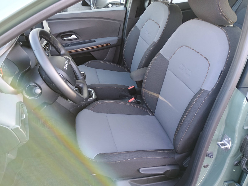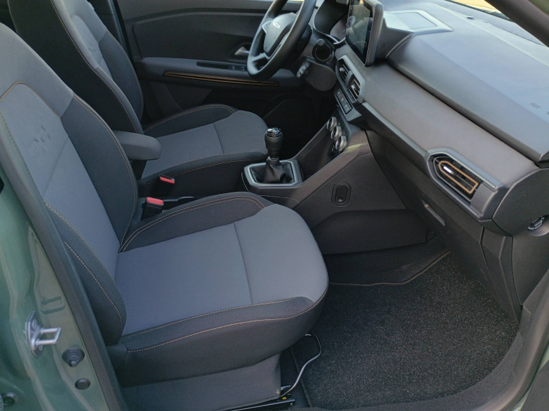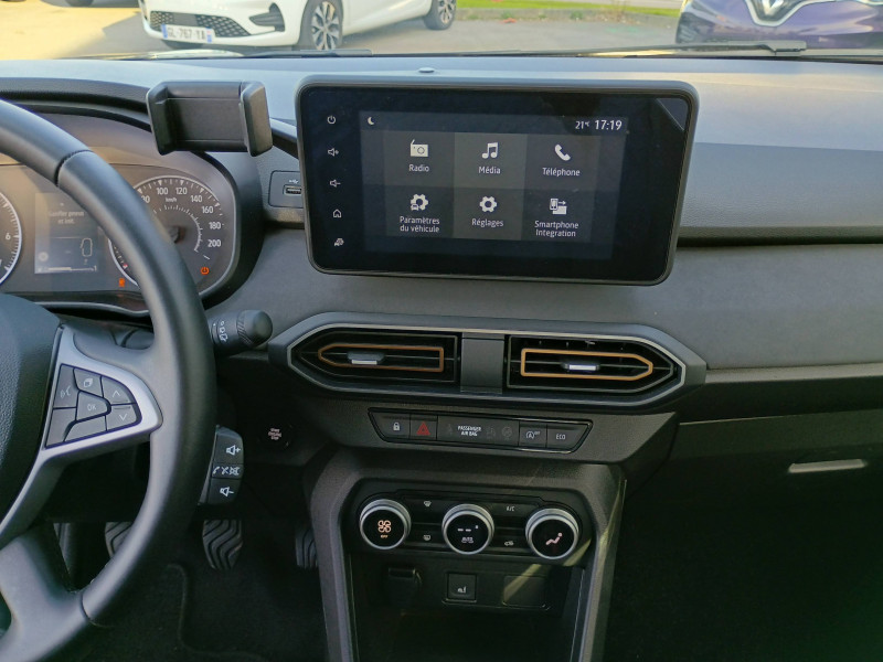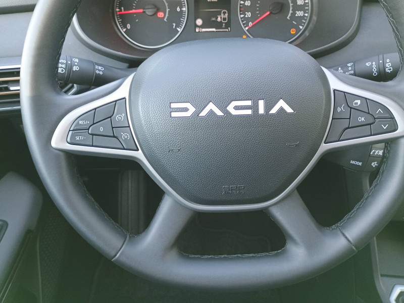 Airbag latéral AV : thorax + rideau / Alerte franchissement de ligne et assistant maintien dans la voie / Antenne requin / Boîte de vitesse manuelle 6 / Console basse + rangement ouvert / Eclairage du coffre / ESP+ASR / Extended Grip / Feux AR avec signature lumineuse Y / Fonction éco-mode / Jantes alluminium 16'' MAHALIA diamantée noir avec cabochon Brun Cuivré / Kit de gonflage / Media Display (écran tactile 8'' sans navigation, radio, réplication smartphone USB, 4 haut-parleurs audiostreaming Bluetooth, satellite de commandes au volant, 1 prise USB-A et 1 prise USB-C) / Peinture opaque / Plancher de coffre double niveau / Prédisposition Ethylotest / Rappel de bouclage de ceintures / Sellerie spécifique Extreme avec surpiqûres brun cuivré / Signature lumineuse DACIA en Y à LED / Stripping Extreme / Système de freinage d'urgence avancé (pieton, deux-rorues et intersection) / Tableau de bord avec écran numérique 3,5'' et compteurs analogiques / Volant Soft Feel TEP /