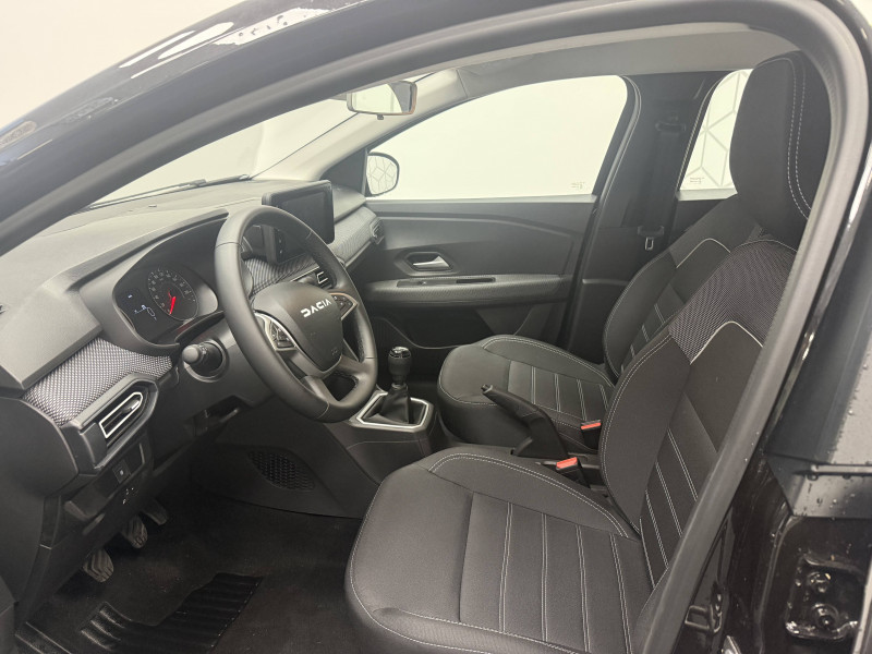 Airbag latéral AV : thorax + rideau / Alerte franchissement de ligne et assistant maintien dans la voie / Boîte de vitesse manuelle 5 / Clé 3 boutons / Console basse + rangement ouvert / Eclairage du coffre / Enjoliveur 16'' ATARA / ESP+ASR / Feux AR avec signature lumineuse Y / Fonction éco-mode / Kit de gonflage / Media Display (écran tactile 8'' sans navigation, radio, réplication smartphone USB, 4 haut-parleurs audiostreaming Bluetooth, satellite de commandes au volant, 1 prise USB-A et 1 prise USB-C) / Prédisposition Ethylotest / Rappel de bouclage de ceintures / Rétroviseurs extérieurs ton carrosserie / Sellerie avec surpiqures grises / Signature lumineuse DACIA en Y à LED / Système de freinage d'urgence avancé (pieton, deux-rorues et intersection) / Tableau de bord avec écran numérique 3,5'' et compteurs analogiques / Volant Soft Feel TEP