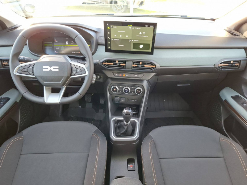 Airbag latéral AV : thorax + rideau / Alerte franchissement de ligne et assistant maintien dans la voie / Antenne requin / Boîte de vitesse manuelle 6 / Console haute + rangement fermé avec accoudoir / Eclairage du coffre / Extended Grip / Feux AR avec signature lumineuse Y / Kit de gonflage / Media Display 10'' + 4 haut-parleurs + réplication smartphone (par parcâble et sans fil) / Nouveau tableau de bord numérique 7'' (AMDC) / Nouvelles Jantes alliage 16'' TAMIA noires / Plancher de coffre double niveau / Prédisposition Ethylotest / Rappel de bouclage de ceintures / Sellerie TEP Microcloud / Signature lumineuse DACIA en Y à LED / Stripping Extreme / Système de freinage d'urgence avancé (piéton, deux-roues et intersection) / Volant Soft Feel TEP