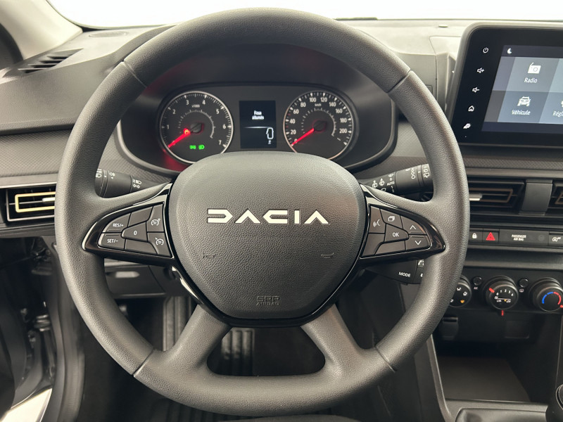 Signature lumineuse DACIA en Y à LED: / Airbag latéral AV : thorax + rideau: / Barres de toit modulables: / Clé 3 boutons: / Console basse + rangement ouvert: / Eclairage du coffre: / Enjoliveur 16'' Saria: / Feux AR avec signature lumineuse Y: / Fonction éco-mode: / Kit de gonflage: / Lève-vitres AR manuels: / Media control (Streaming audio bluetooth avec support téléphone, 2 haut-parleurs, 1 USB): / Nouvelle identité visuelle: / Rappel de bouclage de ceintures: / Système de freinage d'urgence autonome à des vitesses interurbaines 7-170km/h: / Tableau de bord avec écran numérique 3,5'' et compteurs analogiques: / Volant mousse: / Sellerie Stepway avec surpiqures: /
