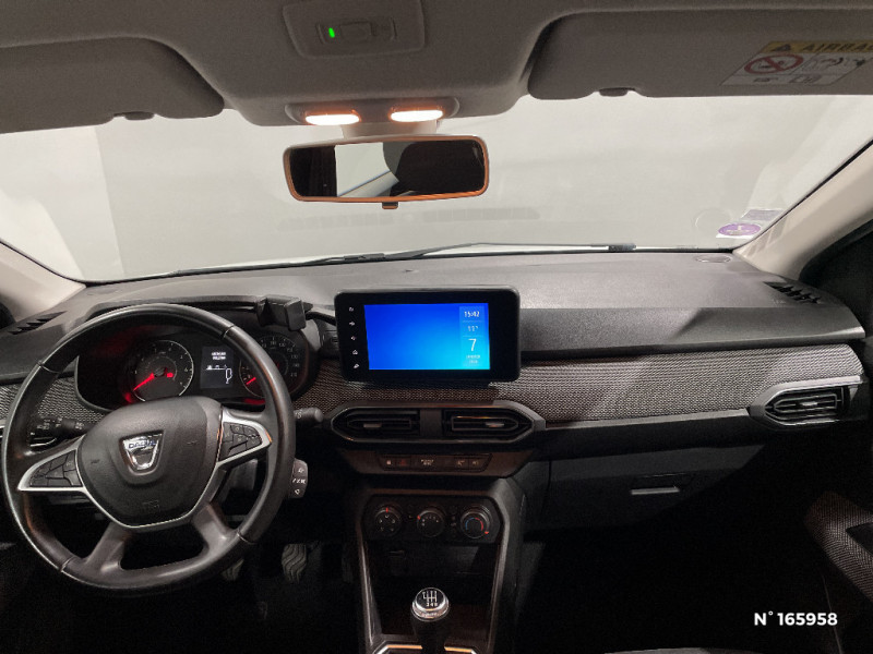 Kit de gonflage / Rétroviseurs extérieurs ton carrosserie / Peinture opaque / Alerte d'oubli de bouclage des ceintures de sécurité / Clé 3 boutons / Console basse + rangement ouvert / Cluster TFT / Enjoliveur 16'' Saria / Harmonie intérieur / Phares de jour LED avec signature lumineuse Y / Projecteurs Full LED avec signature lumineuse Y / Sellerie confort avec surpiqures / Volant Soft Feel TEP / Airbag latéral avant : thorax + rideau / Feux arrières avec signature lumineuse Y / Système de freinage d'urgence autonome à des vitesses interurbaines 30-140km/h / Media display (écran 8'', réplication smartphone, 4 haut-parleurs, 1 port USB, 1 support téléphone) / Signature lumineuse DACIA en Y à LED / Rappel de bouclage de ceintures / Fonction éco-mode