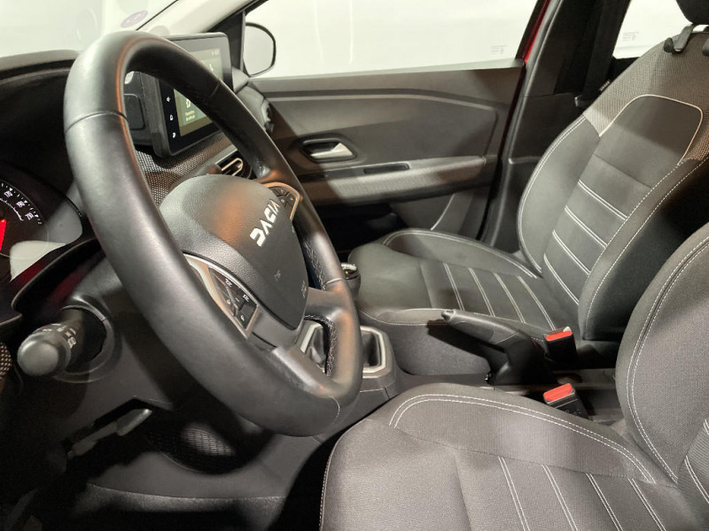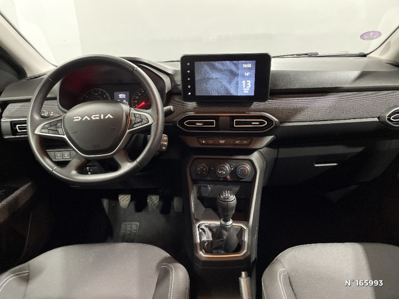 Fonction éco-mode / Kit de gonflage / Clé 3 boutons / Console basse + rangement ouvert / Cluster TFT / Sellerie confort avec surpiqures / Volant Soft Feel TEP / Airbag latéral avant : thorax + rideau / Feux arrières avec signature lumineuse Y / Signature lumineuse DACIA en Y à LED / Rappel de bouclage de ceintures / Media display (écran 8'', réplication smartphone, 4 haut-parleurs, 1 port USB) / Système de freinage d'urgence autonome à des vitesses interurbaines 7-170km/h / Nouvelle identité visuelle / Enjoliveur 15'' Sorane / Roues tôle 15" / Rétroviseurs extérieurs ton carrosserie / Peinture opaque