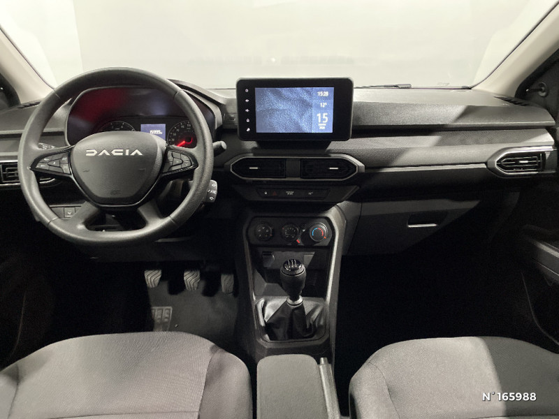 Kit de gonflage / Lève-vitres AR manuels / Chauffage avec recyclage d'air / Clé 3 boutons / Console basse + rangement ouvert / Cluster TFT / Sellerie essentiel / Media control (Streaming audio bluetooth avec support téléphone, 2 haut-parleurs, 1 USB) / Airbag latéral avant : thorax + rideau / Feux arrières avec signature lumineuse Y / Signature lumineuse DACIA en Y à LED / Rappel de bouclage de ceintures / Volant mousse / Système de freinage d'urgence autonome à des vitesses interurbaines 7-170km/h / Nouvelle identité visuelle / Enjoliveur 15'' Elma / Roues tôle 15"