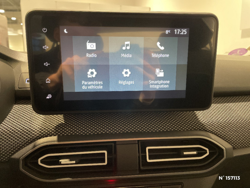 Signature lumineuse DACIA en Y à LED / Rappel de bouclage de ceintures / Media display (écran 8'', réplication smartphone, 4 haut-parleurs, 1 port USB) / Système de freinage d'urgence autonome à des vitesses interurbaines 7-170km/h / Alternateur renforcé / Nouvelle identité visuelle / Enjoliveur 15'' Sorane / Roues tôle 15" / Peinture opaque / Clé 3 boutons / Console basse + rangement ouvert / Cluster TFT / Sellerie confort avec surpiqures / Volant Soft Feel TEP / Airbag latéral avant : thorax + rideau / Kit de gonflage / Rétroviseurs extérieurs ton carrosserie / Fonction éco-mode / Feux arrières avec signature lumineuse Y