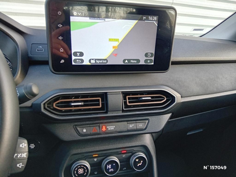 ESP+ASR / Fonction éco-mode / Eclairage du coffre / Kit de gonflage / Prédisposition Ethylotest / Alerte franchissement de ligne et assistant maintien dans la voie / Media Display (écran tactile 8'' sans navigation, radio, réplication smartphone USB, 4 haut-parleurs audiostreaming Bluetooth, satellite de commandes au volant, 1 prise USB-A et 1 prise USB-C) / Boîte de vitesse automatique / Boîte de vitesse manuelle 6 / Peinture opaque / Console basse + rangement ouvert / Volant Soft Feel TEP / Airbag latéral avant : thorax + rideau / Feux arrières avec signature lumineuse Y / Signature lumineuse DACIA en Y à LED / Rappel de bouclage de ceintures / Antenne requin / Stripping Extreme / Sellerie spécifique Extreme avec surpiqures brun cuivré / Extended Grip / Plancher de coffre double niveau / Jantes alluminium 16'' MAHALIA noires avec cabochon Brun Cuivré / Tableau de bord avec écran numérique 3,5'' et compteurs analogiques / Système de freinage d'urgence avancé (pieton, deux-rorues et intersection)