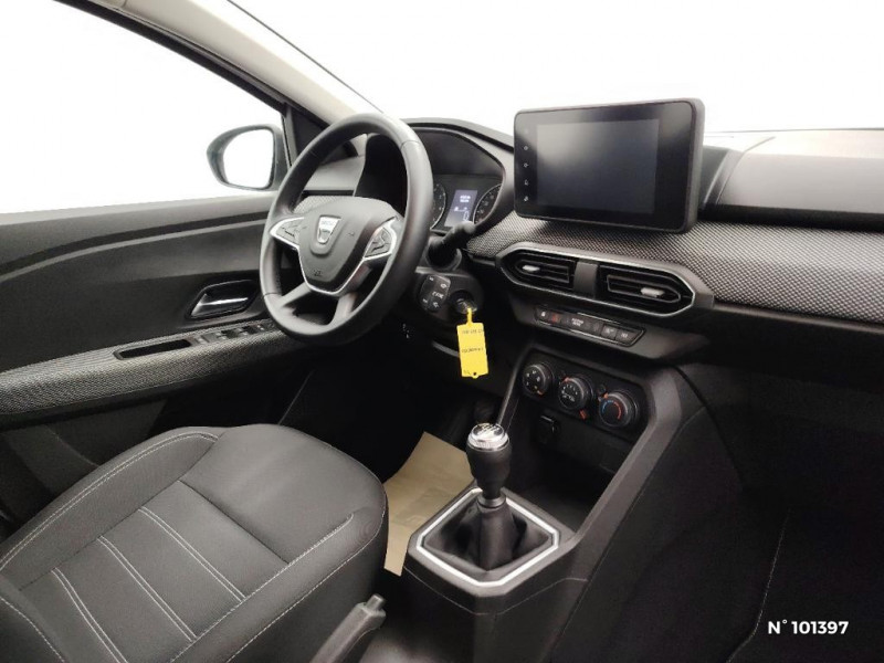Clé 3 boutons / Console basse + rangement ouvert / Cluster TFT / Enjoliveur 15'' Sorane / Harmonie intérieur / Sellerie confort avec surpiqures / Volant Soft Feel TEP / Airbag latéral avant : thorax + rideau / Feux arrières avec signature lumineuse Y / Signature lumineuse DACIA en Y à LED / Rappel de bouclage de ceintures / Media display (écran 8'', réplication smartphone, 4 haut-parleurs, 1 port USB) / Système de freinage d'urgence autonome à des vitesses interurbaines 7-170km/h / Alternateur renforcé / Classes énergetiques B / Fonction éco-mode / Kit de gonflage / Rétroviseurs extérieurs ton carrosserie / Peinture opaque / Roues tôle 15"