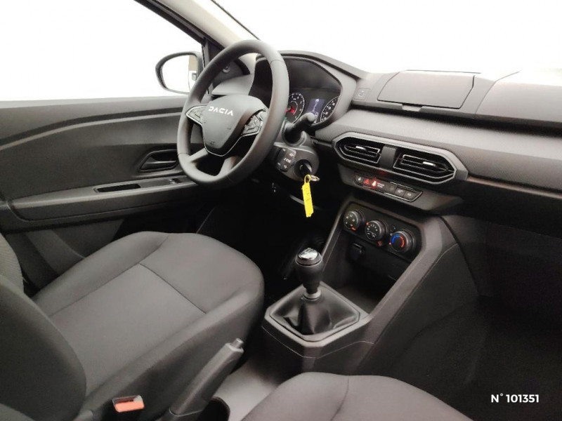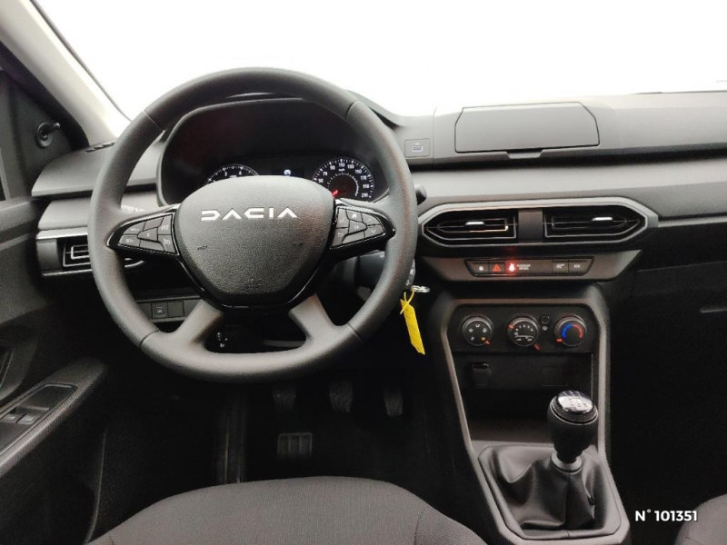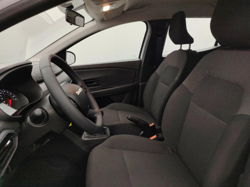 Lève-vitres AR manuels / Chauffage avec recyclage d'air / Clé 3 boutons / Console basse + rangement ouvert / Sellerie essentiel / Media control (Streaming audio bluetooth avec support téléphone, 2 haut-parleurs, 1 USB) / Airbag latéral avant : thorax + rideau / Volant mousse / Fonction éco-mode / Eclairage du coffre / Feux arrières avec signature lumineuse Y / Signature lumineuse DACIA en Y à LED / Rappel de bouclage de ceintures / Système de freinage d'urgence autonome à des vitesses interurbaines 7-170km/h / Nouvelle identité visuelle / Enjoliveur 15'' Elma / Tableau de bord avec écran numérique 3,5'' et compteurs analogiques / Kit de gonflage