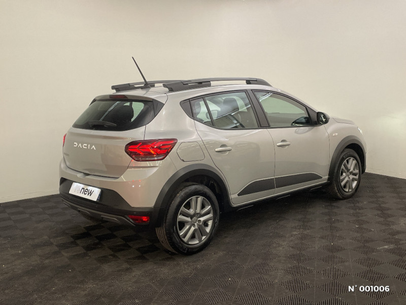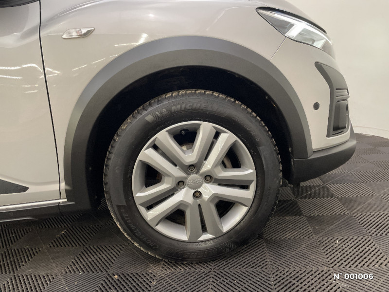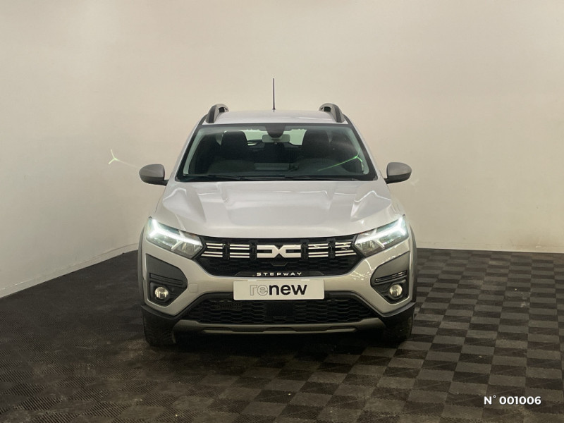 Fonction éco-mode / Kit de gonflage / Peinture opaque / Clé 3 boutons / Console basse + rangement ouvert / Nouvelle identité visuelle / Enjoliveur 16'' Saria - Stepway / Cluster TFT / Sellerie Stepway avec surpiqures / Volant Soft Feel TEP / Airbag latéral avant : thorax + rideau / Feux arrières avec signature lumineuse Y / Signature lumineuse DACIA en Y à LED / Rappel de bouclage de ceintures / Plancher de coffre plat / Media display (écran 8'', réplication smartphone, 4 haut-parleurs, 1 port USB) / Système de freinage d'urgence autonome à des vitesses interurbaines 7-170km/h