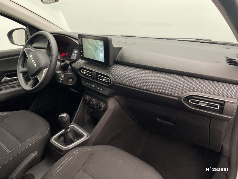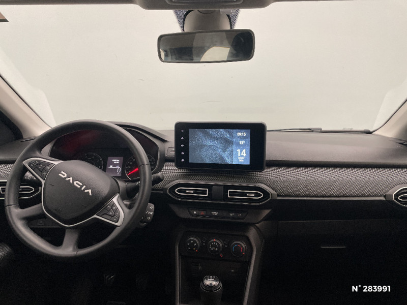Nouvelle identité visuelle / Enjoliveur 15'' Sorane / Roues tôle 15" / Clé 3 boutons / Console basse + rangement ouvert / Cluster TFT / Sellerie confort avec surpiqures / Volant Soft Feel TEP / Airbag latéral avant : thorax + rideau / Feux arrières avec signature lumineuse Y / Signature lumineuse DACIA en Y à LED / Rappel de bouclage de ceintures / Media display (écran 8'', réplication smartphone, 4 haut-parleurs, 1 port USB) / Système de freinage d'urgence autonome à des vitesses interurbaines 7-170km/h / Sellerie Expression avec surpiqures / Fonction éco-mode / Kit de gonflage / Rétroviseurs extérieurs ton carrosserie / Peinture opaque