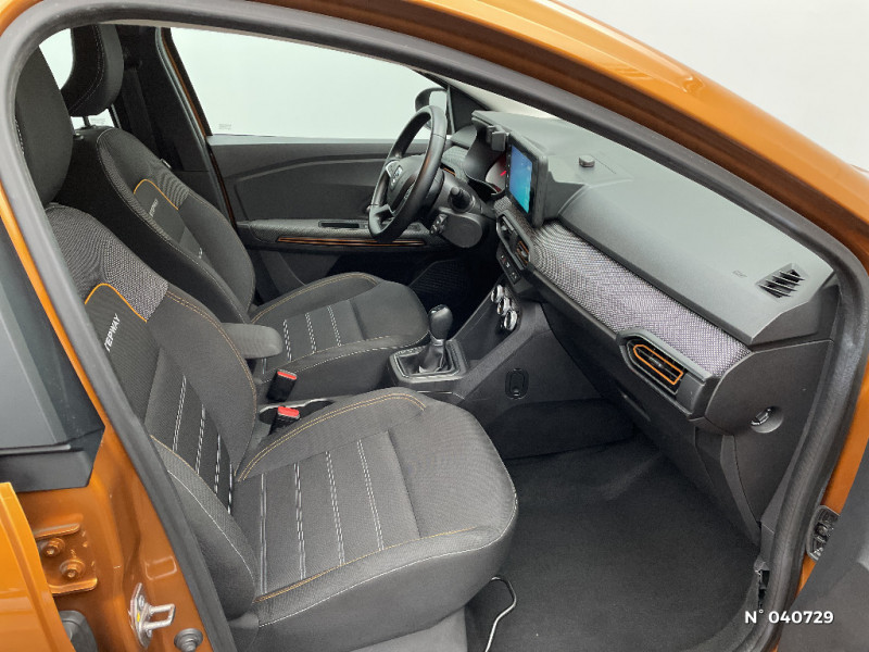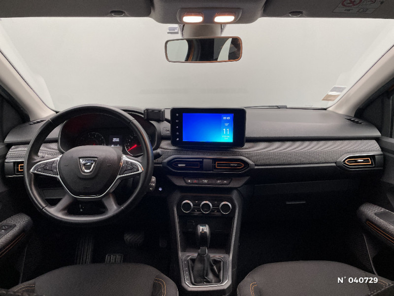 Media display (écran 8'', réplication smartphone, 4 haut-parleurs, 1 port USB, 1 support téléphone) / Rappel de bouclage de ceintures / Fonction éco-mode / Kit de gonflage / Rétroviseurs extérieurs ton carrosserie / Peinture opaque / Alerte d'oubli de bouclage des ceintures de sécurité / Clé 3 boutons / Console basse + rangement ouvert / Cluster TFT / Enjoliveur 16'' Saria - Stepway / Harmonie intérieur / Phares de jour LED avec signature lumineuse Y / Projecteurs Full LED avec signature lumineuse Y / Sellerie Stepway avec surpiqures / Volant Soft Feel TEP / Airbag latéral avant : thorax + rideau / Feux arrières avec signature lumineuse Y / Système de freinage d'urgence autonome à des vitesses interurbaines 30-140km/h / Signature lumineuse DACIA en Y à LED
