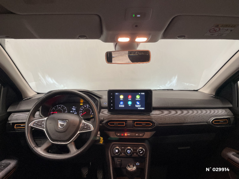 Media display (écran 8'', réplication smartphone, 4 haut-parleurs, 1 port USB, 1 support téléphone) / Signature lumineuse DACIA en Y à LED / Rappel de bouclage de ceintures / Cluster TFT / Enjoliveur 16'' Saria - Stepway / Harmonie intérieur / Sellerie Stepway avec surpiqures / Volant Soft Feel TEP / Fonction éco-mode / Kit de gonflage / Rétroviseurs extérieurs ton carrosserie / Alerte d'oubli de bouclage des ceintures de sécurité / Console basse + rangement ouvert / Clé 3 boutons / Airbag latéral avant : thorax + rideau / Feux arrières avec signature lumineuse Y / Système de freinage d'urgence autonome à des vitesses interurbaines 30-140km/h