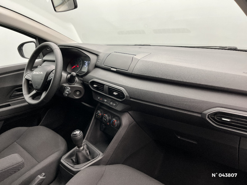 Clé 3 boutons / Console basse + rangement ouvert / Cluster TFT / Sellerie essentiel / Media control (Streaming audio bluetooth avec support téléphone, 2 haut-parleurs, 1 USB) / Airbag latéral avant : thorax + rideau / Feux arrières avec signature lumineuse Y / Signature lumineuse DACIA en Y à LED / Rappel de bouclage de ceintures / Système de freinage d'urgence autonome à des vitesses interurbaines 7-170km/h / Alternateur renforcé / Nouvelle identité visuelle / Enjoliveur 15'' Elma / Roues tôle 15" / Volant mousse / Fonction éco-mode / Kit de gonflage / Lève-vitres AR manuels / Peinture opaque / Chauffage avec recyclage d'air