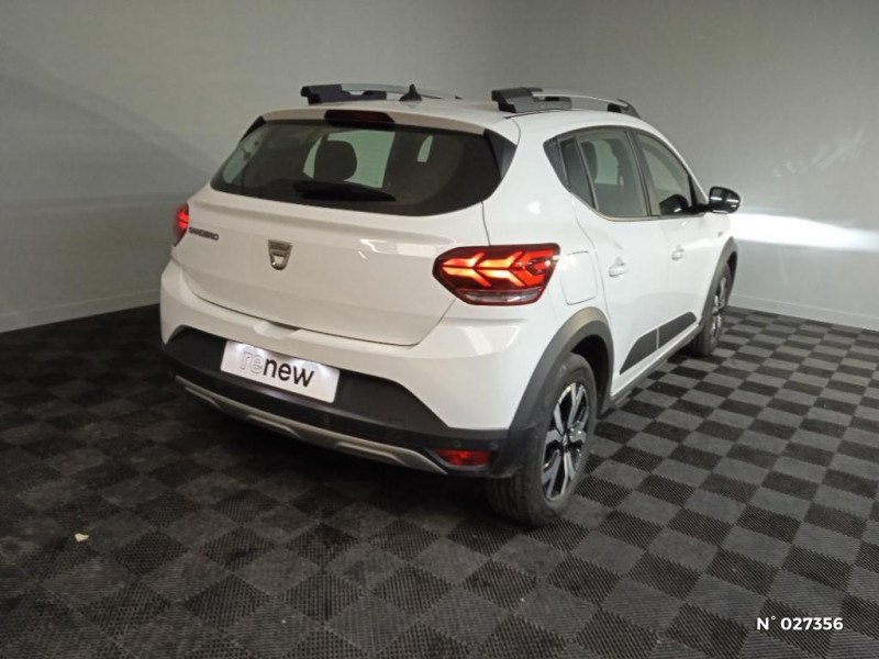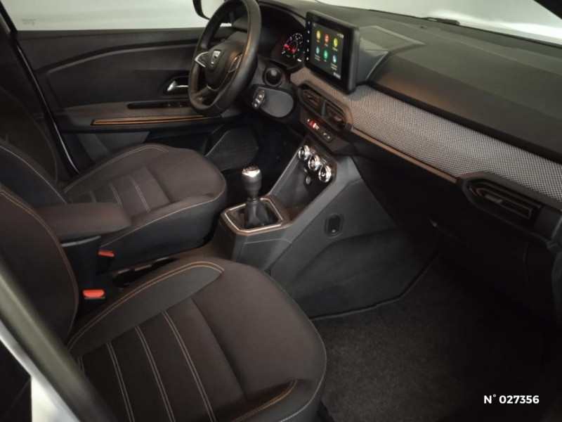 Fonction éco-mode / Kit de gonflage / Rétroviseurs extérieurs ton carrosserie / Projecteurs Full LED avec signature lumineuse Y / Sellerie Stepway avec surpiqures / Volant Soft Feel TEP / Airbag latéral avant : thorax + rideau / Feux arrières avec signature lumineuse Y / Système de freinage d'urgence autonome à des vitesses interurbaines 30-140km/h / Media display (écran 8'', réplication smartphone, 4 haut-parleurs, 1 port USB, 1 support téléphone) / Signature lumineuse DACIA en Y à LED / Rappel de bouclage de ceintures / Peinture opaque / Alerte d'oubli de bouclage des ceintures de sécurité / Clé 3 boutons / Console basse + rangement ouvert / Cluster TFT / Enjoliveur 16'' Saria - Stepway / Harmonie intérieur / Phares de jour LED avec signature lumineuse Y