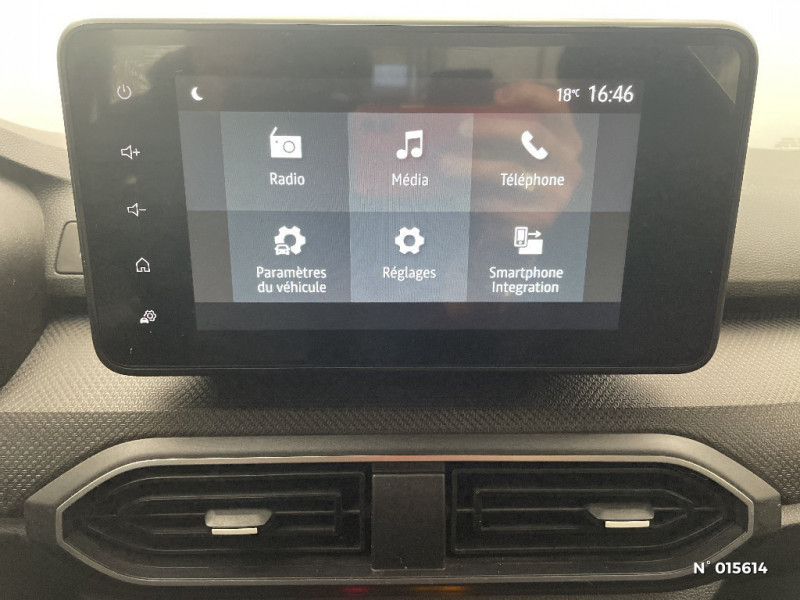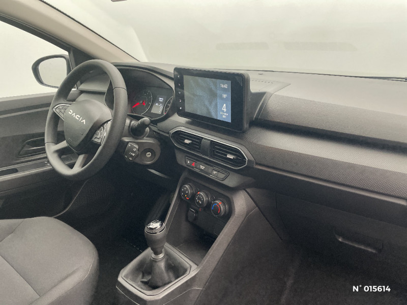 Lève-vitres AR manuels / Chauffage avec recyclage d'air / Clé 3 boutons / Console basse + rangement ouvert / Sellerie essentiel / Nouvelle identité visuelle / Enjoliveur 15'' Elma / Tableau de bord avec écran numérique 3,5'' et compteurs analogiques / Système de freinage d'urgence avancé (pieton, deux-rorues et intersection) / Prédisposition Ethylotest / Alerte franchissement de ligne et assistant maintien dans la voie / Media control (Streaming audio bluetooth avec support téléphone, 2 haut-parleurs, 1 USB) / Airbag latéral avant : thorax + rideau / Feux arrières avec signature lumineuse Y / Signature lumineuse DACIA en Y à LED / Rappel de bouclage de ceintures / Volant mousse / Eclairage du coffre / Kit de gonflage