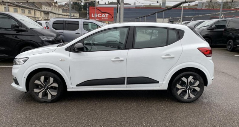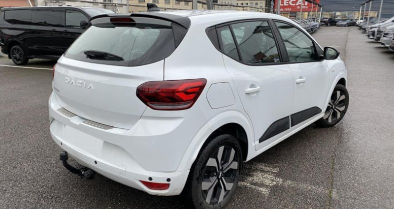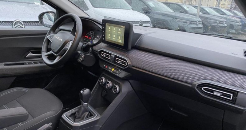 ======= OPTIONS ======= Attelage ======= EQUIPEMENTS DE SERIE ======= ABS avec aide au freinage d'urgence Accoudoir au siège conducteur avant Aide au démarrage en côte Aide au maintien dans la voie Aide au stationnement arrière Alerte de survitesse avec reconnaissance des panneaux de signalisation Banquette arrière rabattable et fractionnable 1 3-2 3 Caméra de recul Carte mains-libres Climatisation automatique Détecteur d'angle mort Détecteur de pluie et allumage automatique des projecteurs Frein de stationnement mécanique Freinage actif d urgence piéton cycliste inter-urbain (AEBS) Jantes alliage 16 Randia Lève-vitres arrière électriques Lève-vitres avant électriques conducteur et passager Media Display Ordinateur de bord : distance parcourue, vitesse moyenne, autonomie, consommation moyenne Peinture Blanc Glacier Phares à double optique avec LED Projecteurs antibrouillard Régulateur et limiteur de vitesse Rétroviseurs extérieurs couleur noir Rétroviseurs extérieurs réglables électriquement Revêtement tissu sur la planche de bord et accoudoirs portes avant Siège conducteur réglable en hauteur Système de contrôle de trajectoire (ESC) et fonction antipatinage (ASR) Système de fixation Isofix pour siège enfant aux places latérales arrière Système de surveillance de l'attention du conducteur Tableau de bord avec écran numérique 3,5'' et compteurs analogiques Volant réglable en hauteur et en profondeur Volant Soft Feel (TEP) avec nouveau logo Dacia Conso Mixte : l/100