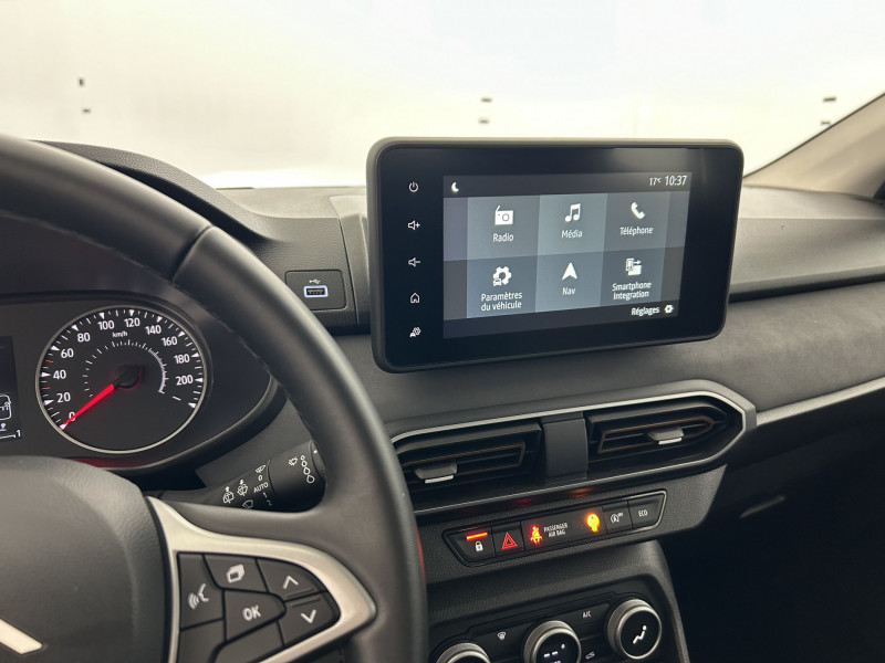 Airbag latéral AV : thorax + rideau / Alerte franchissement de ligne et assistant maintien dans la voie / Antenne requin / Boîte de vitesse manuelle 6 / Console basse + rangement ouvert / Eclairage du coffre / ESP+ASR / Extended Grip / Feux AR avec signature lumineuse Y / Fonction éco-mode / Jantes alluminium 16'' MAHALIA diamantée noir avec cabochon Brun Cuivré / Kit de gonflage / Media Display (écran tactile 8'' sans navigation, radio, réplication smartphone USB, 4 haut-parleurs audiostreaming Bluetooth, satellite de commandes au volant, 1 prise USB-A et 1 prise USB-C) / Peinture opaque / Plancher de coffre double niveau / Prédisposition Ethylotest / Rappel de bouclage de ceintures / Sellerie spécifique Extreme avec surpiqûres brun cuivré / Signature lumineuse DACIA en Y à LED / Stripping Extreme / Système de freinage d'urgence avancé (pieton, deux-rorues et intersection) / Tableau de bord avec écran numérique 3,5'' et compteurs analogiques / Volant Soft Feel TEP /