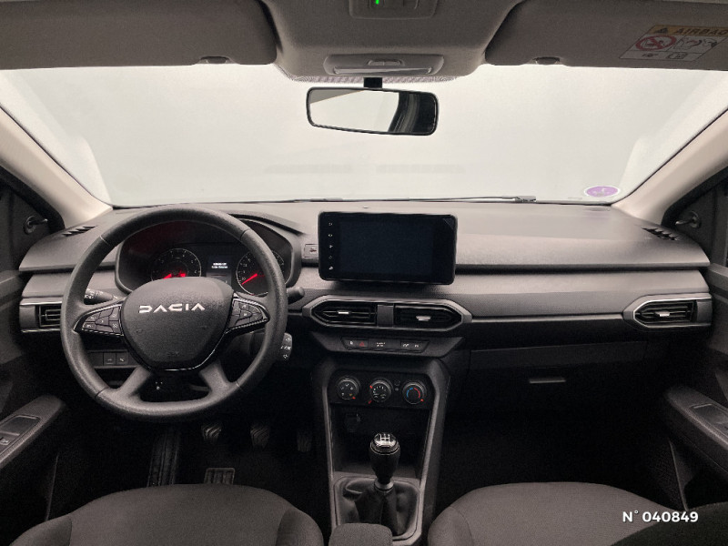 Kit de gonflage / Lève-vitres AR manuels / Peinture opaque / Chauffage avec recyclage d'air / Clé 3 boutons / Console basse + rangement ouvert / Cluster TFT / Sellerie essentiel / Media control (Streaming audio bluetooth avec support téléphone, 2 haut-parleurs, 1 USB) / Airbag latéral avant : thorax + rideau / Feux arrières avec signature lumineuse Y / Signature lumineuse DACIA en Y à LED / Rappel de bouclage de ceintures / Volant mousse / Système de freinage d'urgence autonome à des vitesses interurbaines 7-170km/h / Alternateur renforcé / Fonction éco-mode / Nouvelle identité visuelle / Enjoliveur 15'' Elma / Roues tôle 15"