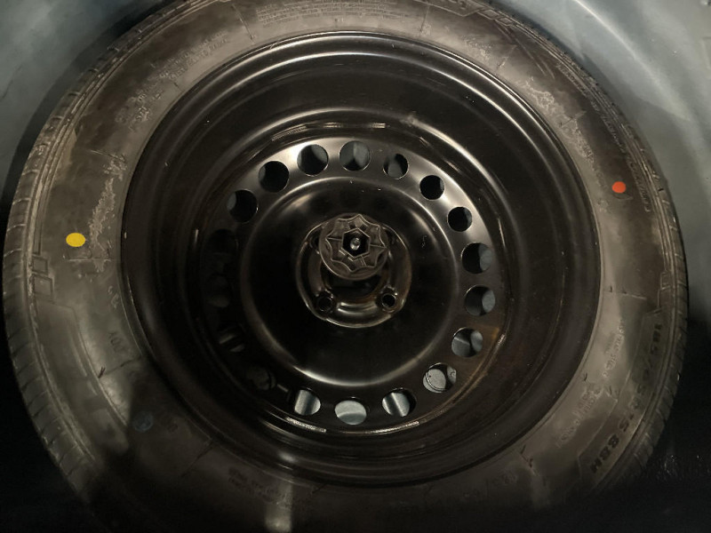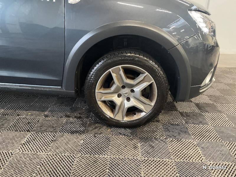 Boucliers ton carosserie / Stop & Start / Eclairage du coffre / Indicateur de changement de vitesse / Harmonie carbone foncé / Alerte non bouclage de ceintures AV / Poignées de portes extérieures noires / Kit de gonflage / Lève-vitres AR manuels / Peinture Blanc Glacier / Jantes design 16'' Bayadere Dark Metal / Poignées de portes intérieures chrome / Sellerie Stepway / Volant Dacia 4 branches / R-Plug & Music (radio, prises jack et USB, Bluetooth) / Poignées de portes intérieures chrome satiné