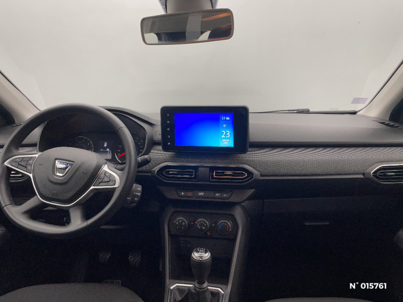 Console basse + rangement ouvert / Enjoliveur 15'' Sorane / Harmonie intérieur / Sellerie confort avec surpiqures / Volant Soft Feel TEP / Airbag latéral avant : thorax + rideau / Feux arrières avec signature lumineuse Y / Signature lumineuse DACIA en Y à LED / Rappel de bouclage de ceintures / Media display (écran 8'', réplication smartphone, 4 haut-parleurs, 1 port USB) / Système de freinage d'urgence autonome à des vitesses interurbaines 7-170km/h / Classes énergetiques B / Fonction éco-mode / Kit de gonflage / Rétroviseurs extérieurs ton carrosserie / Roues tôle 15" / Clé 3 boutons / Cluster TFT
