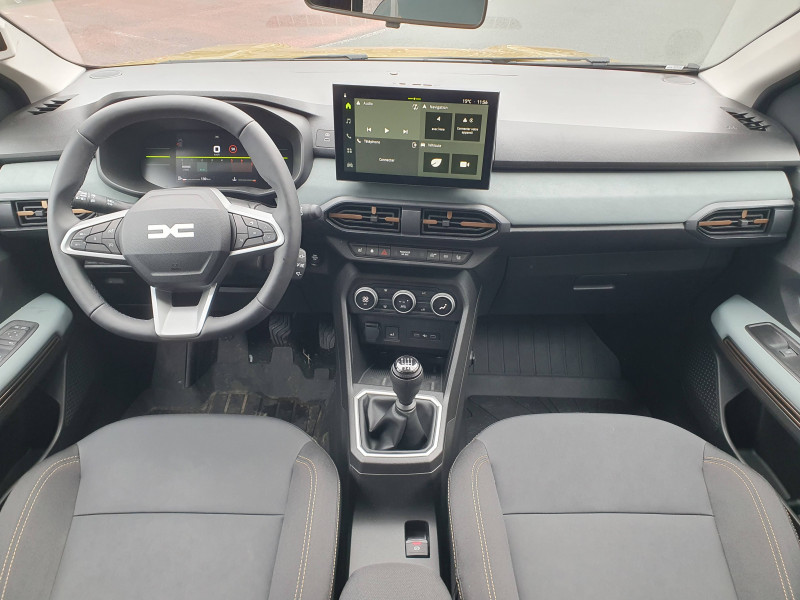 Airbag latéral AV : thorax + rideau / Alerte franchissement de ligne et assistant maintien dans la voie / Antenne requin / Boîte de vitesse manuelle 6 / Console haute + rangement fermé avec accoudoir / Eclairage du coffre / Extended Grip / Feux AR avec signature lumineuse Y / Kit de gonflage / Media Display 10'' + 4 haut-parleurs + réplication smartphone (par parcâble et sans fil) / Nouveau tableau de bord numérique 7'' (AMDC) / Nouvelles Jantes alliage 16'' TAMIA noires / Plancher de coffre double niveau / Prédisposition Ethylotest / Rappel de bouclage de ceintures / Sellerie TEP Microcloud / Signature lumineuse DACIA en Y à LED / Stripping Extreme / Système de freinage d'urgence avancé (piéton, deux-roues et intersection) / Volant Soft Feel TEP