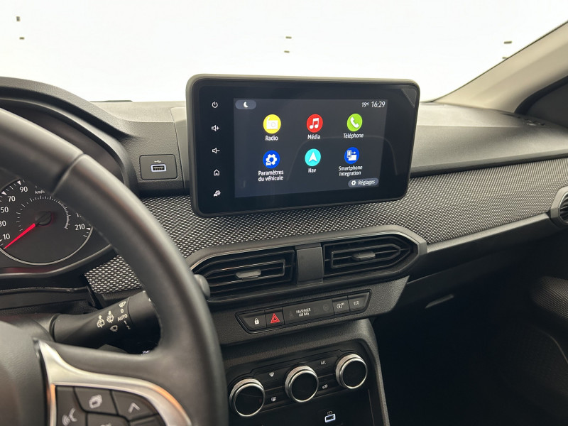 Airbag latéral AV : thorax + rideau / Alternateur renforcé / Classes énergetiques B / Clé 3 boutons / Cluster TFT / Console basse + rangement ouvert / Enjoliveur 15'' Sorane / Feux AR avec signature lumineuse Y / Fonction éco-mode / Harmonie intérieure / Kit de gonflage / Media display (écran 8'', réplication smartphone, 4 haut-parleurs, 1 port USB) / Rappel de bouclage de ceintures / Rétroviseurs extérieurs ton carrosserie / Roues tôle 15" / Sellerie Confort avec surpiqures / Signature lumineuse DACIA en Y à LED / Système de freinage d'urgence autonome à des vitesses interurbaines 7-170km/h / Volant Soft Feel TEP /