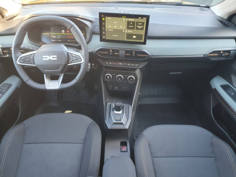 Airbag latéral AV : thorax + rideau / Alerte franchissement de ligne et assistant maintien dans la voie / Antenne requin / Boîte de vitesse automatique 6 / Console haute + rangement fermé avec accoudoir / Eclairage du coffre / Extended Grip / Feux AR avec signature lumineuse Y / Kit de gonflage / Media Display 10'' + 4 haut-parleurs + réplication smartphone (par parcâble et sans fil) / Nouveau tableau de bord numérique 7'' (AMDC) / Plancher de coffre double niveau / Prédisposition Ethylotest / Rappel de bouclage de ceintures / Sellerie TEP Microcloud / Signature lumineuse DACIA en Y à LED / Stripping Extreme / Système de freinage d'urgence avancé (piéton, deux-roues et intersection) / Volant Soft Feel TEP