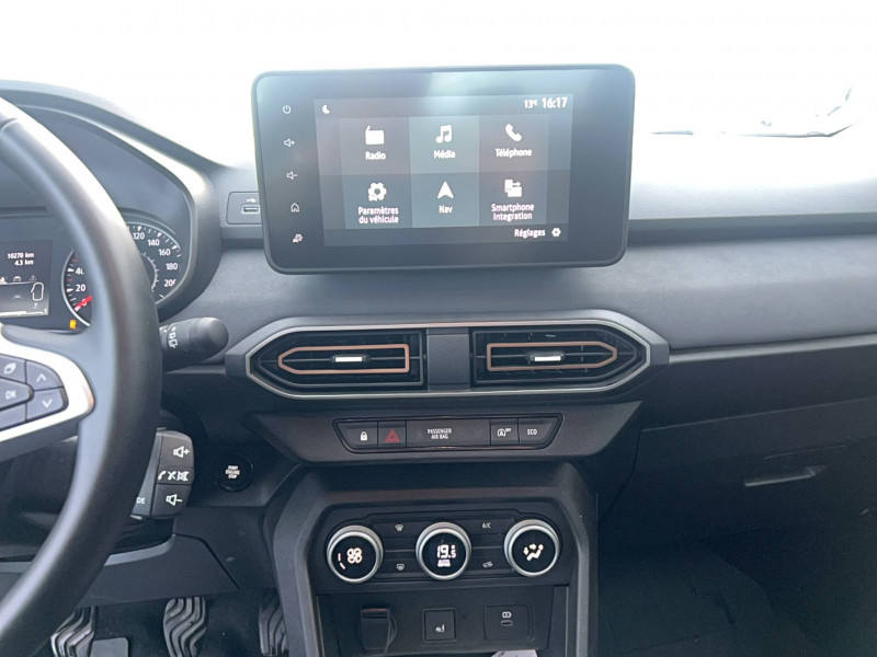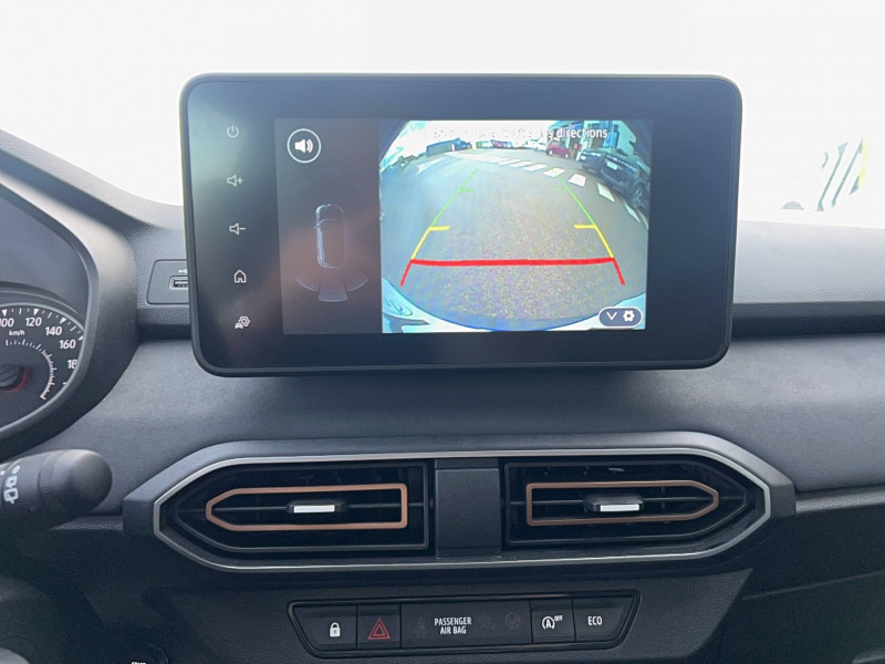 Airbag latéral AV : thorax + rideau / Alerte franchissement de ligne et assistant maintien dans la voie / Antenne requin / Boîte de vitesse manuelle 6 / Console basse + rangement ouvert / Eclairage du coffre / ESP+ASR / Extended Grip / Feux AR avec signature lumineuse Y / Fonction éco-mode / Jantes alluminium 16'' MAHALIA diamantée noir avec cabochon Brun Cuivré / Kit de gonflage / Media Display (écran tactile 8'' sans navigation, radio, réplication smartphone USB, 4 haut-parleurs audiostreaming Bluetooth, satellite de commandes au volant, 1 prise USB-A et 1 prise USB-C) / Peinture opaque / Plancher de coffre double niveau / Prédisposition Ethylotest / Rappel de bouclage de ceintures / Sellerie spécifique Extreme avec surpiqûres brun cuivré / Signature lumineuse DACIA en Y à LED / Stripping Extreme / Système de freinage d'urgence avancé (pieton, deux-rorues et intersection) / Tableau de bord avec écran numérique 3,5'' et compteurs analogiques / Volant Soft Feel TEP /