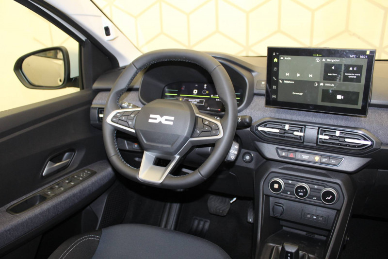 Airbag latéral AV : thorax + rideau / Alerte franchissement de ligne et assistant maintien dans la voie / Antenne requin / Boîte de vitesse automatique 6 / Console haute + rangement fermé avec accoudoir / Eclairage du coffre / Feux AR avec signature lumineuse Y / Kit de gonflage / Media Display 10'' + 4 haut-parleurs + réplication smartphone (par parcâble et sans fil) / Nouveau tableau de bord numérique 7'' (AMDC) / Nouvelle Sellerie spécifique journey / Plancher de coffre double niveau / Prédisposition Ethylotest / Rappel de bouclage de ceintures / Rétroviseurs extérieurs ton carrosserie / Signature lumineuse DACIA en Y à LED / Stripping Journey / Système de freinage d'urgence avancé (piéton, deux-roues et intersection) / Volant Soft Feel TEP