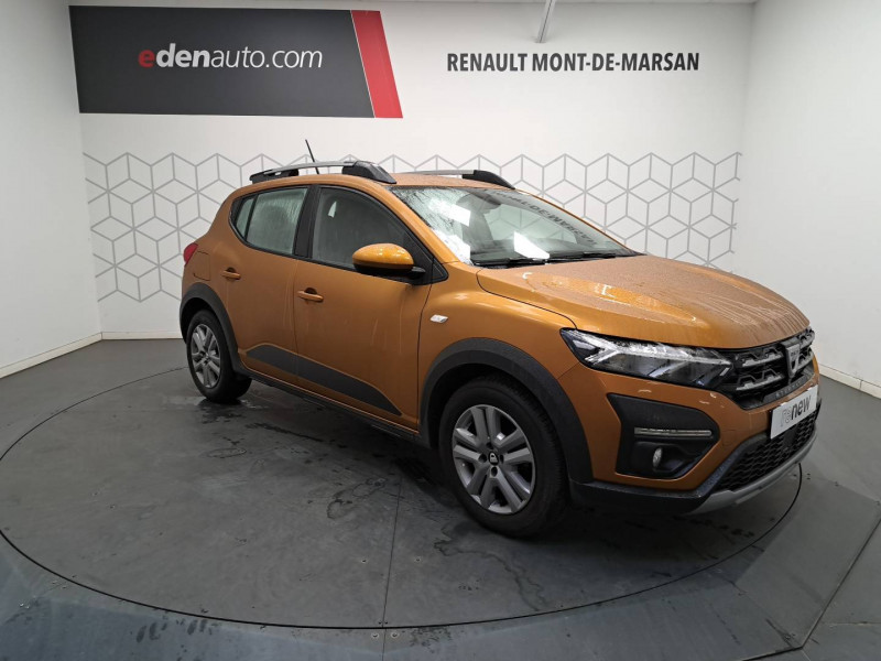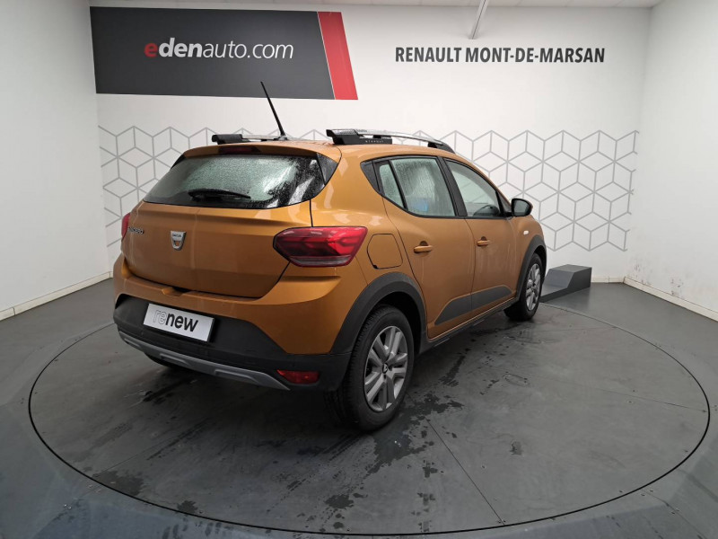 Airbag latéral AV : thorax + rideau / Alerte d'oubli de bouclage des ceintures de sécurité / Clé 3 boutons / Cluster TFT / Console basse + rangement ouvert / Enjoliveur 16'' Saria - Stepway / Feux AR avec signature lumineuse Y / Fonction éco-mode / Harmonie intérieure / Kit de gonflage / Media display (écran 8'', réplication smartphone, 4 haut-parleurs, 1 port USB, 1 support téléphone) / Rappel de bouclage de ceintures / Rétroviseurs extérieurs ton carrosserie / Sellerie Stepway avec surpiqures / Signature lumineuse DACIA en Y à LED / Système de freinage d'urgence autonome à des vitesses interurbaines 30-140km/h / Volant Soft Feel TEP