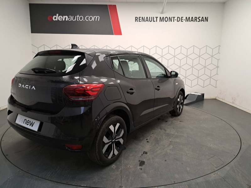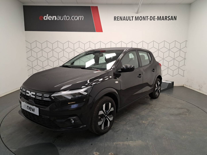 Airbag latéral AV : thorax + rideau / Alerte franchissement de ligne et assistant maintien dans la voie / Antenne requin / Boîte de vitesse manuelle 5 / Console basse + rangement ouvert / Eclairage du coffre / ESP+ASR / Feux AR avec signature lumineuse Y / Fonction éco-mode / Jantes 16'' RANDIA / Kit de gonflage / Media Display (écran tactile 8'' sans navigation, radio, réplication smartphone USB, 4 haut-parleurs audiostreaming Bluetooth, satellite de commandes au volant, 1 prise USB-A et 1 prise USB-C) / Plancher de coffre double niveau / Prédisposition Ethylotest / Rappel de bouclage de ceintures / Sellerie avec surpiqures grises / Signature lumineuse DACIA en Y à LED / Système de freinage d'urgence avancé (pieton, deux-rorues et intersection) / Tableau de bord avec écran numérique 3,5'' et compteurs analogiques / Volant Soft Feel TEP