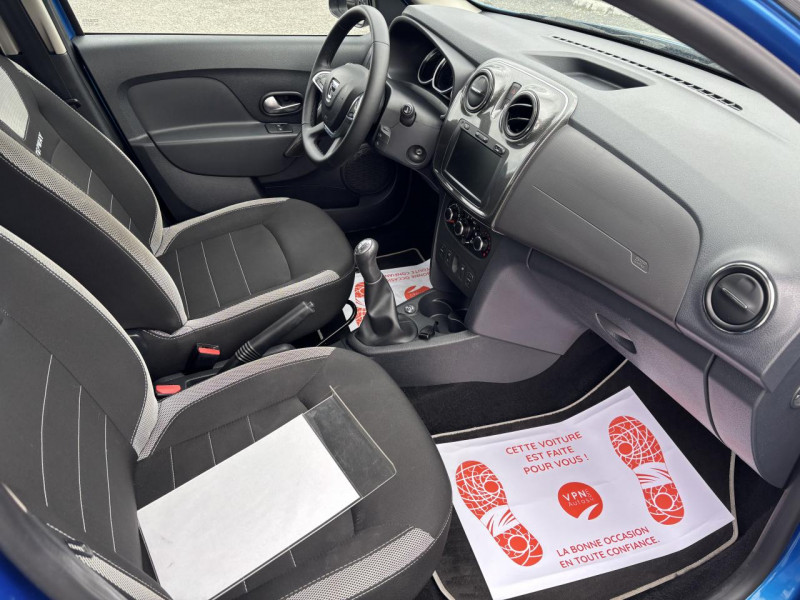 conducteur et passager avant / Appuie-tête arrière central virgule / Banquette arrière rabattable avec dossier fractionnable 1/3-2/3 / Barres de toit longitudinales Dark Metal / Boucliers avant et arrière bi-ton / Calandre Stepway avec chrome / Canule déchappement chromée / Cartographie France / Cerclage des compteurs peint chrome satiné / Chauffage et ventilation à 4 vitesses / Clignotants impulsionnels / Compte-tours / Coques de rétroviseurs extérieurs Dark Metal / Eclairage boîte à gants / Eclairage du coffre / Eclairage plafonnier avant central / Enjoliveur de façade centrale Chrome Satin / Entourage daérateurs chrome satiné / Façade centrale avec décor Twist / Feux arrière avec signature lumineuse / Garde au sol rehaussée / Harmonie intérieure carbone foncé / Indicateur de changement de vitesses / Kit de gonflage / Mode ECO avec bouton dactivation / Poche téléphone sur siège passager avant / Poches aumônières à larrière des sièges avant / Poignée de maintien arrière / Poignée de maintien passager / Poignées de porte extérieures noires / Poignées de portes intérieures façon chrome satiné / Poignées de tirage portes avant avec décor Twist / Pommeau de levier de vitesse cuir / Porte-bouteilles à larrière / Prise 12 V à larrière / Prise 12 volts à lavant / Protecteurs dailes noirs / Protections de bas de caisse noire / Rangements ouverts au-dessus de la planche de bord / Sellerie spécifique Stepway / Skis avant et arrière aspect chrome satiné / Stripping Stepway sur portes avant / Système de contrôle de trajectoire (ESC) et fonction antipatinage