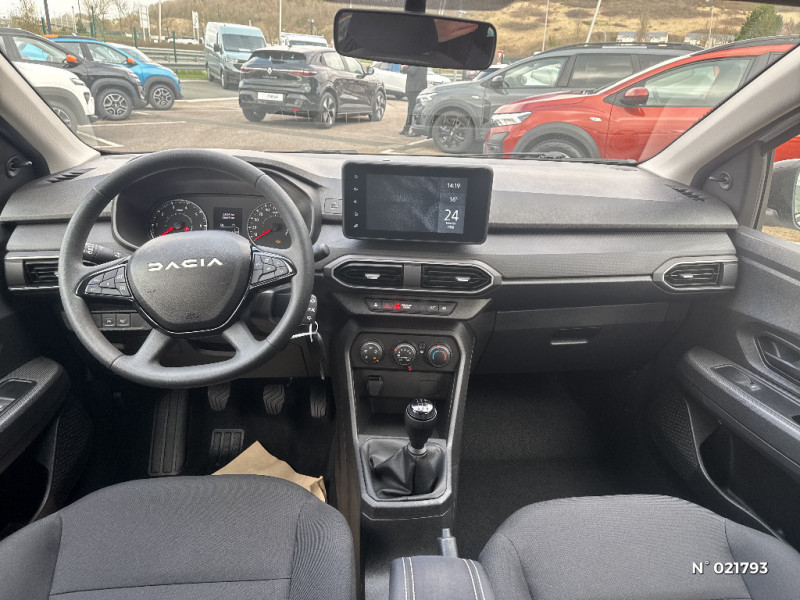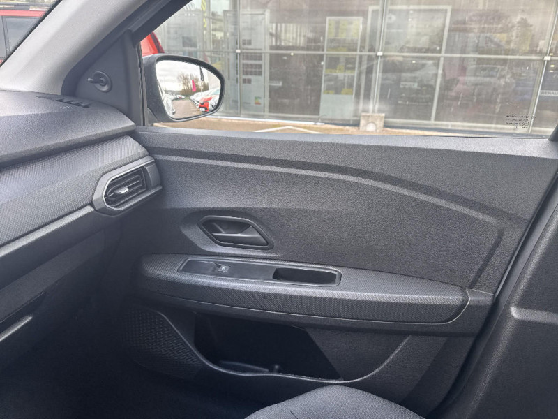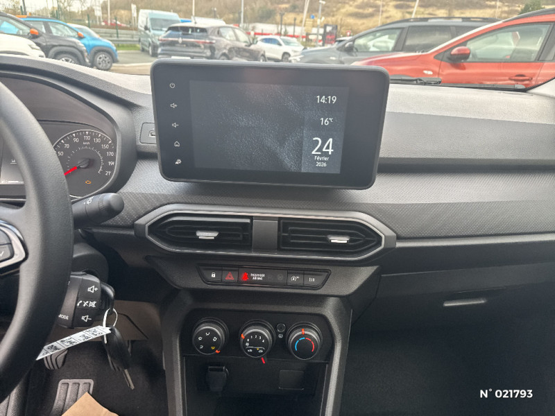 Fonction éco-mode / Kit de gonflage / Lève-vitres AR manuels / Media control (Streaming audio bluetooth avec support téléphone, 2 haut-parleurs, 1 USB) / Nouvelle identité visuelle / Peinture opaque / Rappel de bouclage de ceintures / Roues tôle 15" / Sellerie Essentiel / Signature lumineuse DACIA en Y à LED / Système de freinage d'urgence autonome à des vitesses interurbaines 7-170km/h / Tableau de bord avec écran numérique 3,5'' et compteurs analogiques / Volant mousse / Airbag latéral AV : thorax + rideau / Alternateur renforcé / Chauffage avec recyclage d'air / Clé 3 boutons / Cluster TFT / Console basse + rangement ouvert / Eclairage du coffre / Enjoliveur 15'' Elma / Feux AR avec signature lumineuse Y