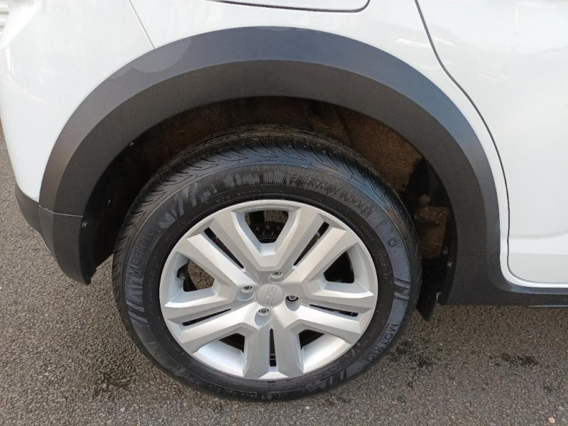 Tableau de bord avec écran numérique 3,5'' et compteurs analogiques / Volant mousse / Fonction éco-mode / Eclairage du coffre / Kit de gonflage / Lève-vitres AR manuels / Clé 3 boutons / Console basse + rangement ouvert / Sellerie Stepway avec surpiqures / Media control (Streaming audio bluetooth avec support téléphone, 2 haut-parleurs, 1 USB) / Feux arrières avec signature lumineuse Y / Signature lumineuse DACIA en Y à LED / Rappel de bouclage de ceintures / Système de freinage d'urgence autonome à des vitesses interurbaines 7-170km/h / Nouvelle identité visuelle / Enjoliveur 16'' Saria - Stepway / Enjoliveur 16'' Saria / Airbag latéral avant : thorax + rideau