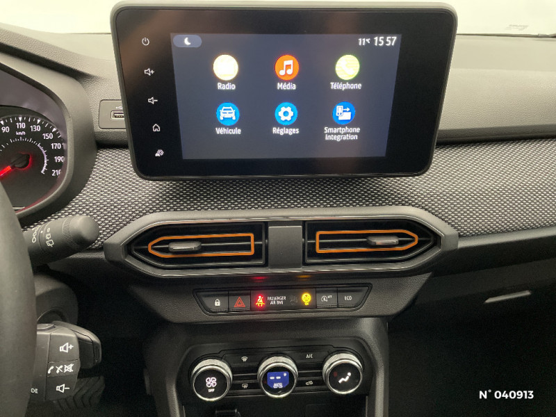 Classe energetique C / Alternateur renforcé / Peinture opaque / Clé 3 boutons / Console basse + rangement ouvert / Cluster TFT / Enjoliveur 16'' Saria - Stepway / Harmonie intérieur / Sellerie Stepway avec surpiqures / Volant Soft Feel TEP / Airbag latéral avant : thorax + rideau / Feux arrières avec signature lumineuse Y / Signature lumineuse DACIA en Y à LED / Fonction éco-mode / Kit de gonflage / Rétroviseurs extérieurs ton carrosserie / Rappel de bouclage de ceintures / Plancher de coffre plat / Media display (écran 8'', réplication smartphone, 4 haut-parleurs, 1 port USB) / Système de freinage d'urgence autonome à des vitesses interurbaines 7-170km/h
