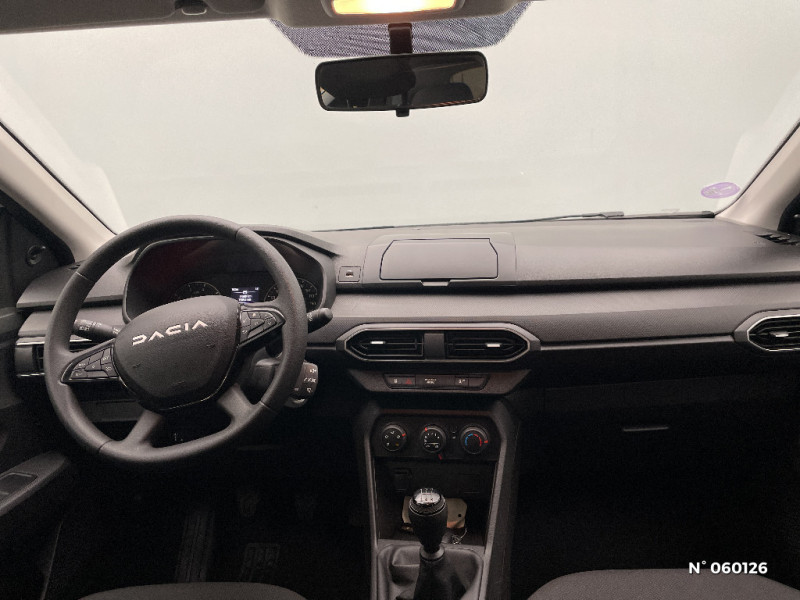 Roues tôle 15" / Media control (Streaming audio bluetooth avec support téléphone, 2 haut-parleurs, 1 USB) / Airbag latéral avant : thorax + rideau / Volant mousse / Kit de gonflage / Peinture opaque / Chauffage avec recyclage d'air / Clé 3 boutons / Console basse + rangement ouvert / Cluster TFT / Sellerie essentiel / Feux arrières avec signature lumineuse Y / Signature lumineuse DACIA en Y à LED / Rappel de bouclage de ceintures / Système de freinage d'urgence autonome à des vitesses interurbaines 7-170km/h / Nouvelle identité visuelle / Enjoliveur 15'' Elma