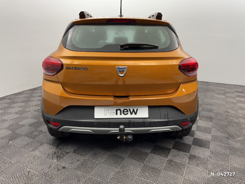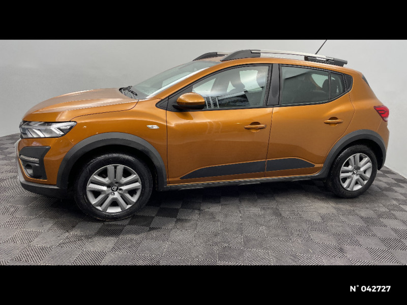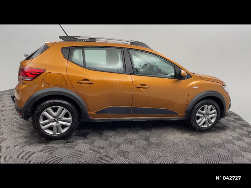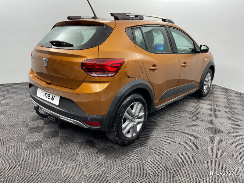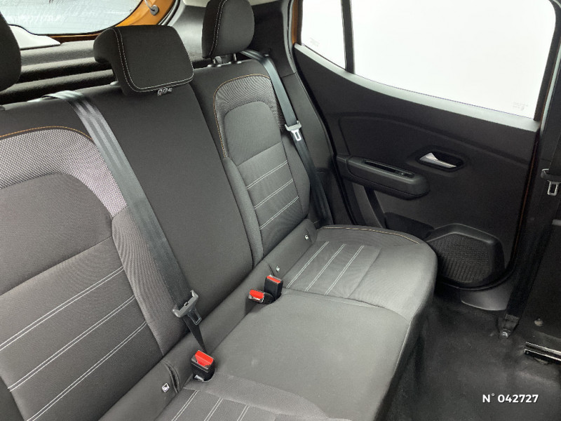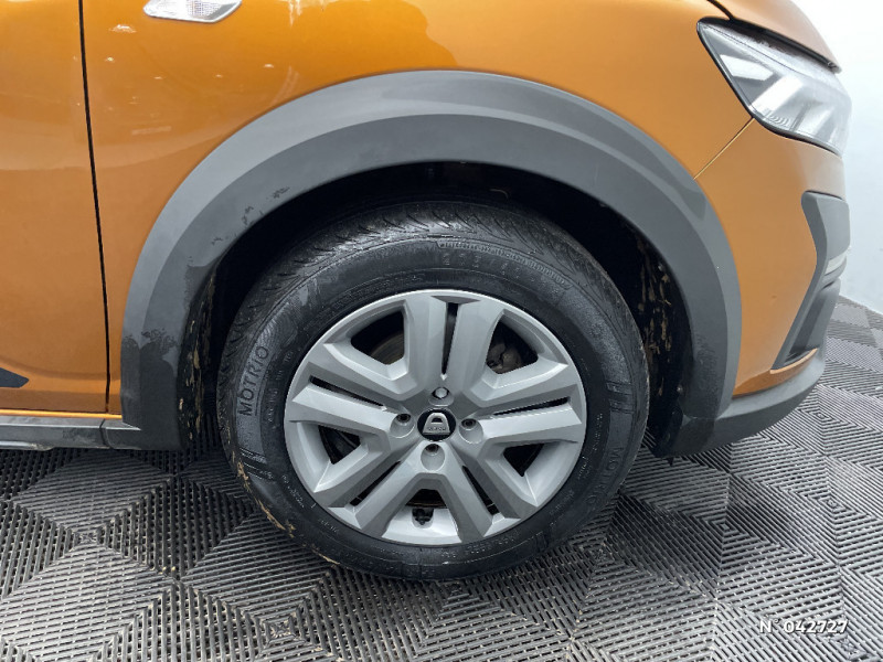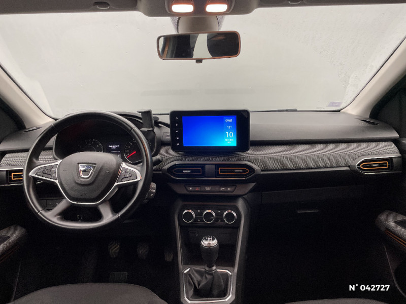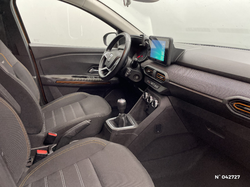 Sellerie Stepway avec surpiqures / Harmonie intérieur / Airbag latéral avant : thorax + rideau / Feux arrières avec signature lumineuse Y / Système de freinage d'urgence autonome à des vitesses interurbaines 30-140km/h / Media display (écran 8'', réplication smartphone, 4 haut-parleurs, 1 port USB, 1 support téléphone) / Signature lumineuse DACIA en Y à LED / Rappel de bouclage de ceintures / Alerte d'oubli de bouclage des ceintures de sécurité / Fonction éco-mode / Kit de gonflage / Rétroviseurs extérieurs ton carrosserie / Clé 3 boutons / Console basse + rangement ouvert / Cluster TFT / Enjoliveur 16'' Saria - Stepway / Volant Soft Feel TEP