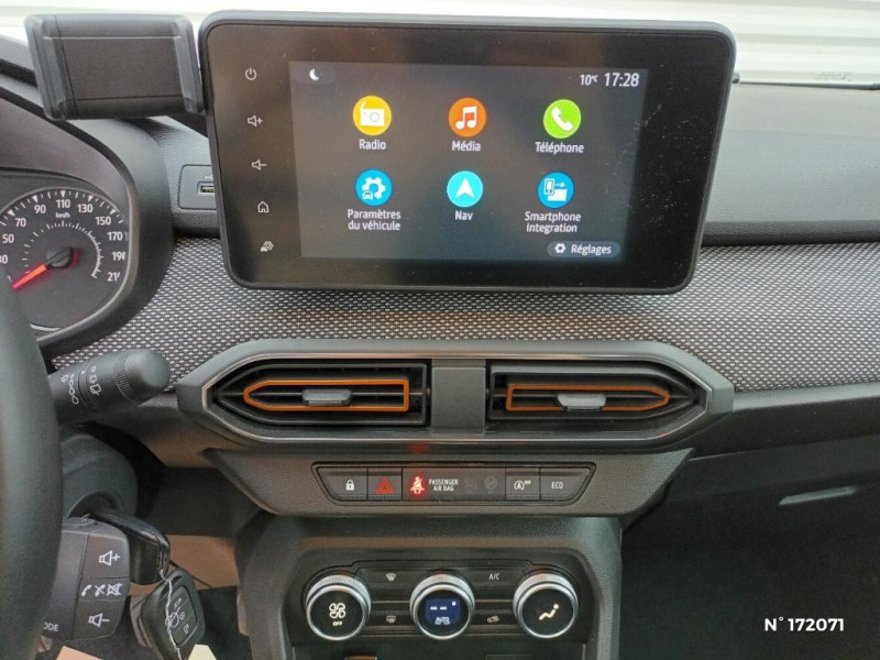 Fonction éco-mode / Kit de gonflage / Rétroviseurs extérieurs ton carrosserie / Peinture opaque / Alerte d'oubli de bouclage des ceintures de sécurité / Clé 3 boutons / Console basse + rangement ouvert / Cluster TFT / Enjoliveur 16'' Saria - Stepway / Harmonie intérieur / Phares de jour LED avec signature lumineuse Y / Projecteurs Full LED avec signature lumineuse Y / Sellerie Stepway avec surpiqures / Volant Soft Feel TEP / Airbag latéral avant : thorax + rideau / Feux arrières avec signature lumineuse Y / Système de freinage d'urgence autonome à des vitesses interurbaines 30-140km/h / Media display (écran 8'', réplication smartphone, 4 haut-parleurs, 1 port USB, 1 support téléphone) / Signature lumineuse DACIA en Y à LED / Rappel de bouclage de ceintures