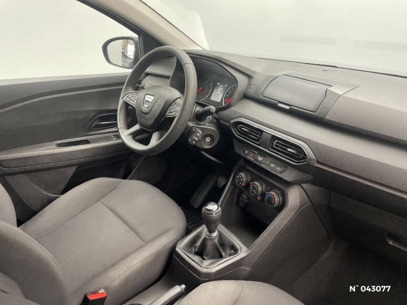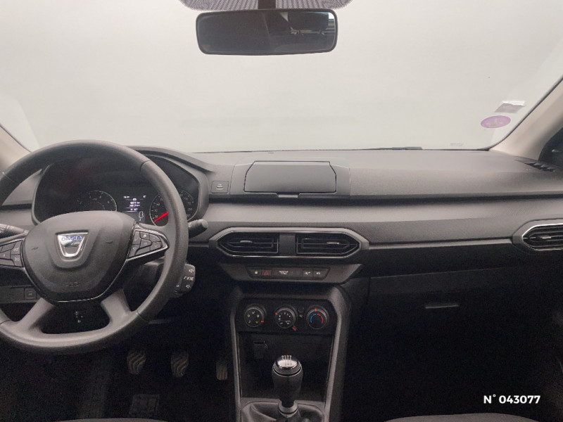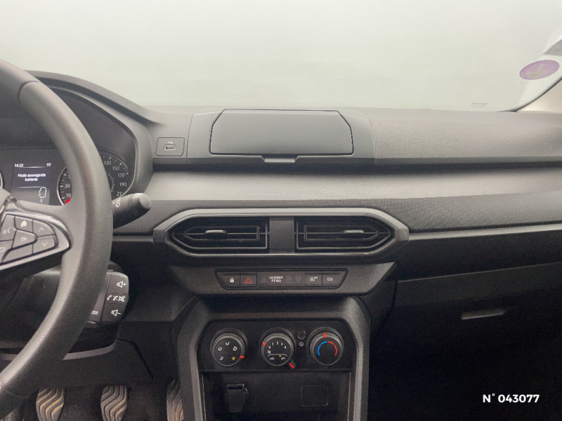 Harmonie intérieure / Sellerie essentiel / Media control (Streaming audio bluetooth avec support téléphone, 2 haut-parleurs, 1 USB) / Airbag latéral avant : thorax + rideau / Feux arrières avec signature lumineuse Y / Système de freinage d'urgence autonome à des vitesses interurbaines 30-140km/h / Signature lumineuse DACIA en Y à LED / Volant mousse / Fonction éco-mode / Kit de gonflage / Alerte d'oubli de bouclage des ceintures de sécurité / Roues tôle 15" / Chauffage avec recyclage d'air / Clé 3 boutons / Console basse + rangement ouvert / Cluster TFT / Rappel de bouclage de ceintures / Enjoliveur 15'' Elma