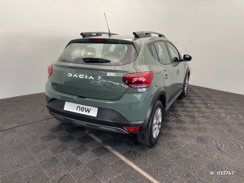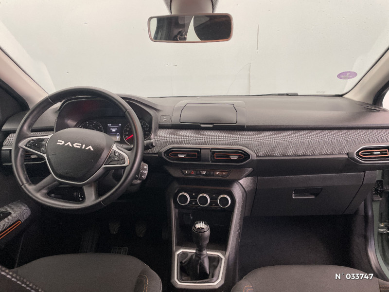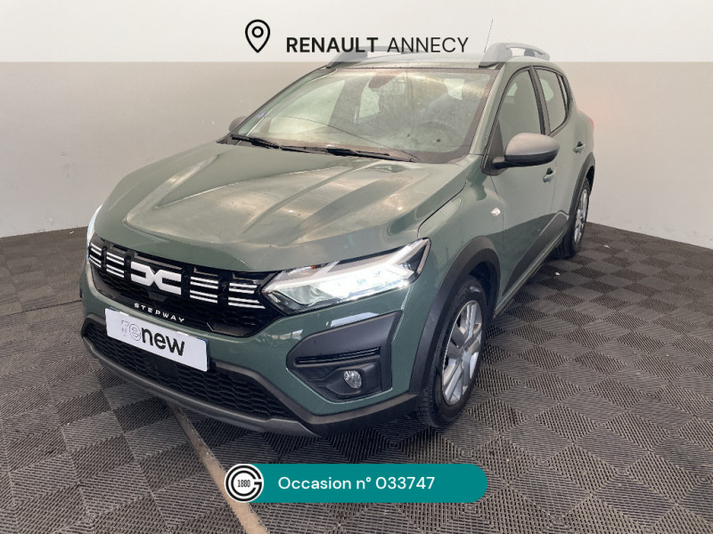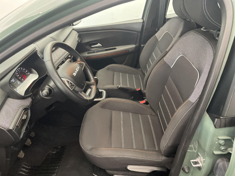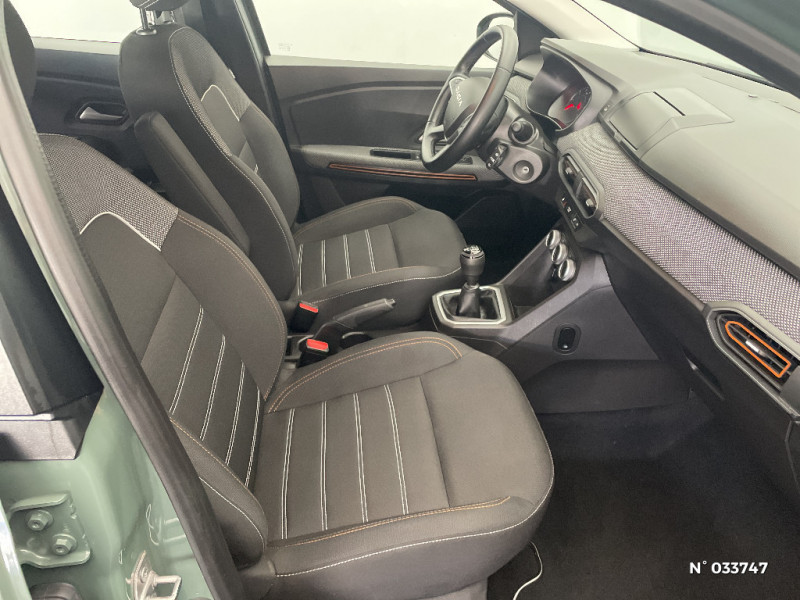 Nouvelle identité visuelle / Enjoliveur 16'' Saria - Stepway / Fonction éco-mode / Kit de gonflage / Peinture opaque / Clé 3 boutons / Console basse + rangement ouvert / Cluster TFT / Sellerie Stepway avec surpiqures / Volant Soft Feel TEP / Airbag latéral avant : thorax + rideau / Feux arrières avec signature lumineuse Y / Signature lumineuse DACIA en Y à LED / Rappel de bouclage de ceintures / Plancher de coffre plat / Media display (écran 8'', réplication smartphone, 4 haut-parleurs, 1 port USB) / Système de freinage d'urgence autonome à des vitesses interurbaines 7-170km/h