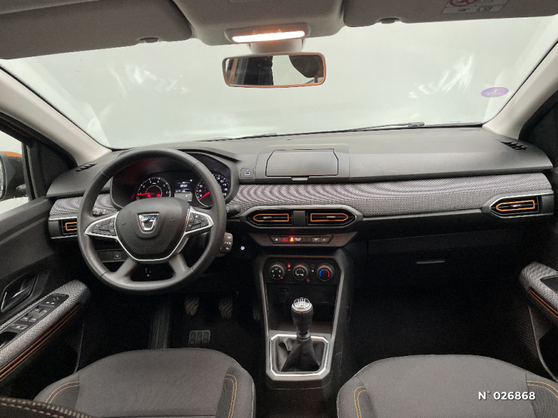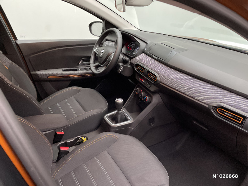 Harmonie intérieur / Sellerie Stepway avec surpiqures / Volant Soft Feel TEP / Airbag latéral avant : thorax + rideau / Feux arrières avec signature lumineuse Y / Signature lumineuse DACIA en Y à LED / Rappel de bouclage de ceintures / Plancher de coffre plat / Media display (écran 8'', réplication smartphone, 4 haut-parleurs, 1 port USB) / Système de freinage d'urgence autonome à des vitesses interurbaines 7-170km/h / Classe energetique C / Alternateur renforcé / Fonction éco-mode / Kit de gonflage / Rétroviseurs extérieurs ton carrosserie / Clé 3 boutons / Console basse + rangement ouvert / Cluster TFT / Enjoliveur 16'' Saria - Stepway