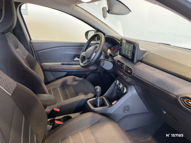Cluster TFT / Sellerie Stepway avec surpiqures / Volant Soft Feel TEP / Cartographie Europe de l'Ouest / Airbag latéral avant : thorax + rideau / Feux arrières avec signature lumineuse Y / Signature lumineuse DACIA en Y à LED / Rappel de bouclage de ceintures / Plancher de coffre plat / Media NAV (écran 8'' avec réplication, navigation, 6 haut-parleurs, 2 USB) / Console semi-haute + rangement fermé avec accoudoir / Système de freinage d'urgence autonome à des vitesses interurbaines 7-170km/h / Alternateur renforcé / Nouvelle identité visuelle / Mise à jour gratuite pendant 3 ans de la cartographie / Jantes 16'' Mahalia diamantée noir / Kit de gonflage / Peinture opaque / Fonction éco-mode