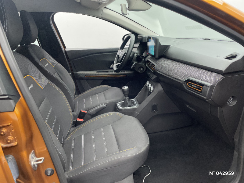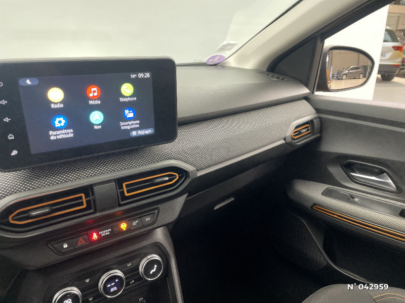 Fonction éco-mode / Kit de gonflage / Rétroviseurs extérieurs ton carrosserie / Peinture opaque / Alerte d'oubli de bouclage des ceintures de sécurité / Clé 3 boutons / Console basse + rangement ouvert / Cluster TFT / Enjoliveur 16'' Saria - Stepway / Harmonie intérieur / Phares de jour LED avec signature lumineuse Y / Projecteurs Full LED avec signature lumineuse Y / Sellerie Stepway avec surpiqures / Volant Soft Feel TEP / Airbag latéral avant : thorax + rideau / Feux arrières avec signature lumineuse Y / Système de freinage d'urgence autonome à des vitesses interurbaines 30-140km/h / Media display (écran 8'', réplication smartphone, 4 haut-parleurs, 1 port USB, 1 support téléphone) / Signature lumineuse DACIA en Y à LED / Rappel de bouclage de ceintures