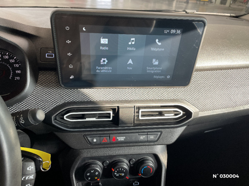 Clé 3 boutons / Console basse + rangement ouvert / Sellerie confort avec surpiqures / Volant Soft Feel TEP / Airbag latéral avant : thorax + rideau / Feux arrières avec signature lumineuse Y / Signature lumineuse DACIA en Y à LED / Rappel de bouclage de ceintures / Media display (écran 8'', réplication smartphone, 4 haut-parleurs, 1 port USB) / Système de freinage d'urgence autonome à des vitesses interurbaines 7-170km/h / Fonction éco-mode / Eclairage du coffre / Kit de gonflage / Rétroviseurs extérieurs ton carrosserie / Nouvelle identité visuelle / Enjoliveur 15'' Sorane / Sellerie Expression avec surpiqures / Sellerie avec surpiqures grises / Tableau de bord avec écran numérique 3,5'' et compteurs analogiques