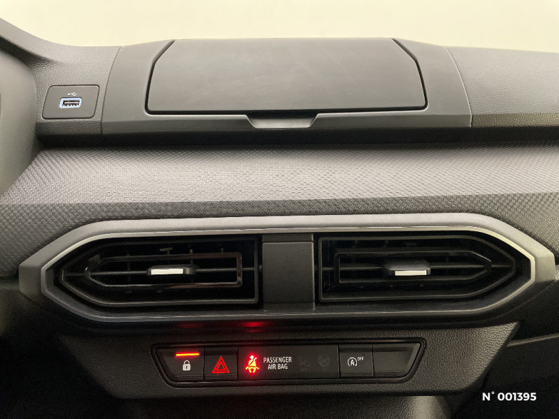 Roues tôle 15" / Volant mousse / Kit de gonflage / Lève-vitres AR manuels / Chauffage avec recyclage d'air / Clé 3 boutons / Console basse + rangement ouvert / Cluster TFT / Sellerie essentiel / Media control (Streaming audio bluetooth avec support téléphone, 2 haut-parleurs, 1 USB) / Airbag latéral avant : thorax + rideau / Feux arrières avec signature lumineuse Y / Signature lumineuse DACIA en Y à LED / Rappel de bouclage de ceintures / Système de freinage d'urgence autonome à des vitesses interurbaines 7-170km/h / Nouvelle identité visuelle / Enjoliveur 15'' Elma
