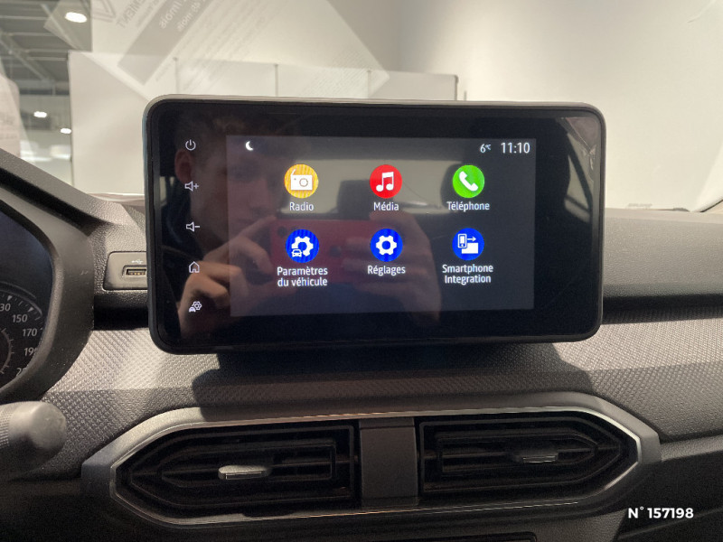 Volant mousse / Kit de gonflage / Peinture opaque / Alerte d'oubli de bouclage des ceintures de sécurité / Roues tôle 15" / Chauffage avec recyclage d'air / Clé 3 boutons / Signature lumineuse DACIA en Y à LED / Rappel de bouclage de ceintures / Console basse + rangement ouvert / Cluster TFT / Enjoliveur 15'' Sorane / Harmonie intérieure / Phares de jour LED avec signature lumineuse Y / Projecteurs Full LED avec signature lumineuse Y / Sellerie essentiel / Media control (Streaming audio bluetooth avec support téléphone, 2 haut-parleurs, 1 USB) / Airbag latéral avant : thorax + rideau / Feux arrières avec signature lumineuse Y / Système de freinage d'urgence autonome à des vitesses interurbaines 30-140km/h